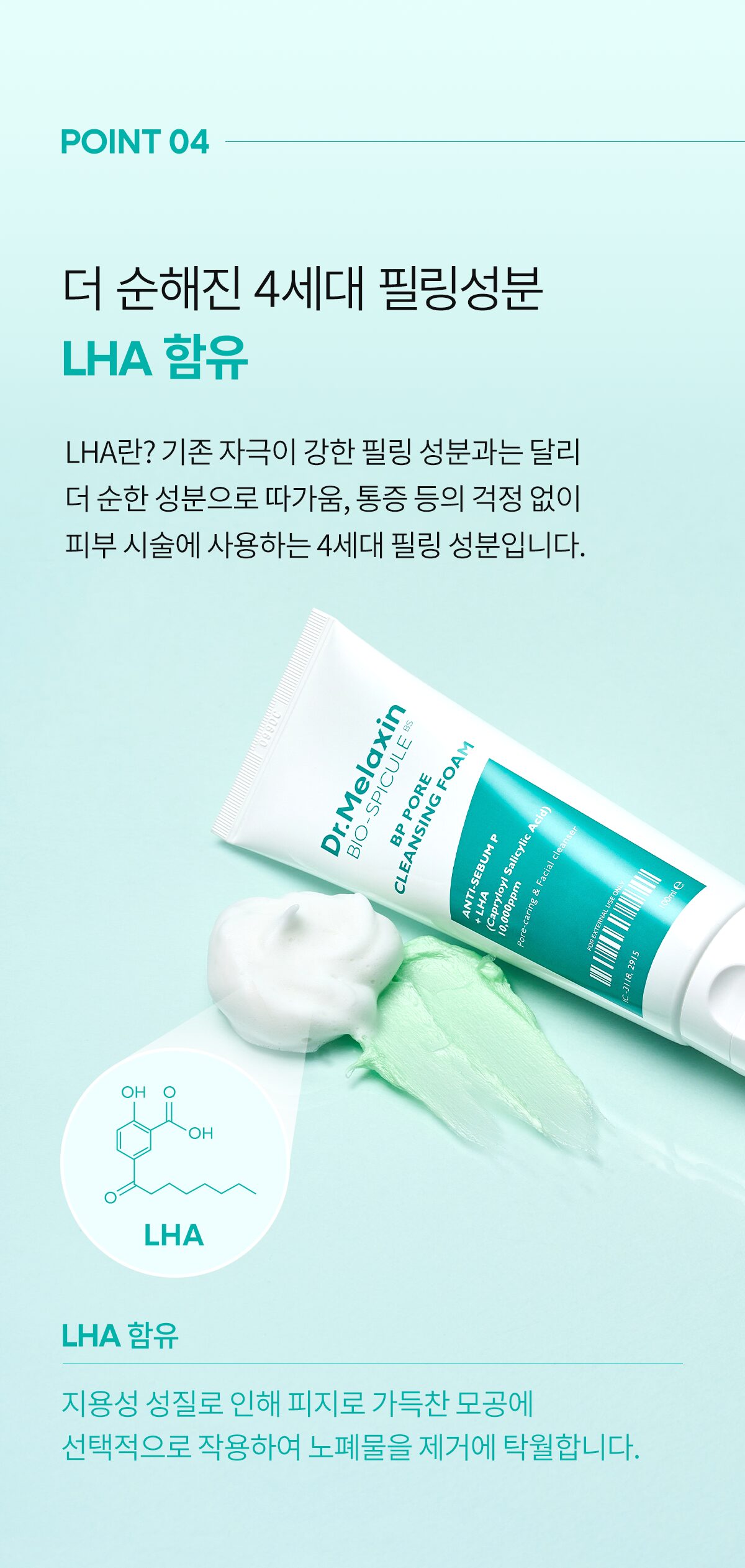 Unlike traditional peeling agents that can irritate, Dr. Melaxin features 4th-generation LHA, a milder exfoliant that works selectively on oil-clogged pores. This lipid-soluble agent ensures effective impurity removal without causing discomfort, making it ideal for sensitive skin.