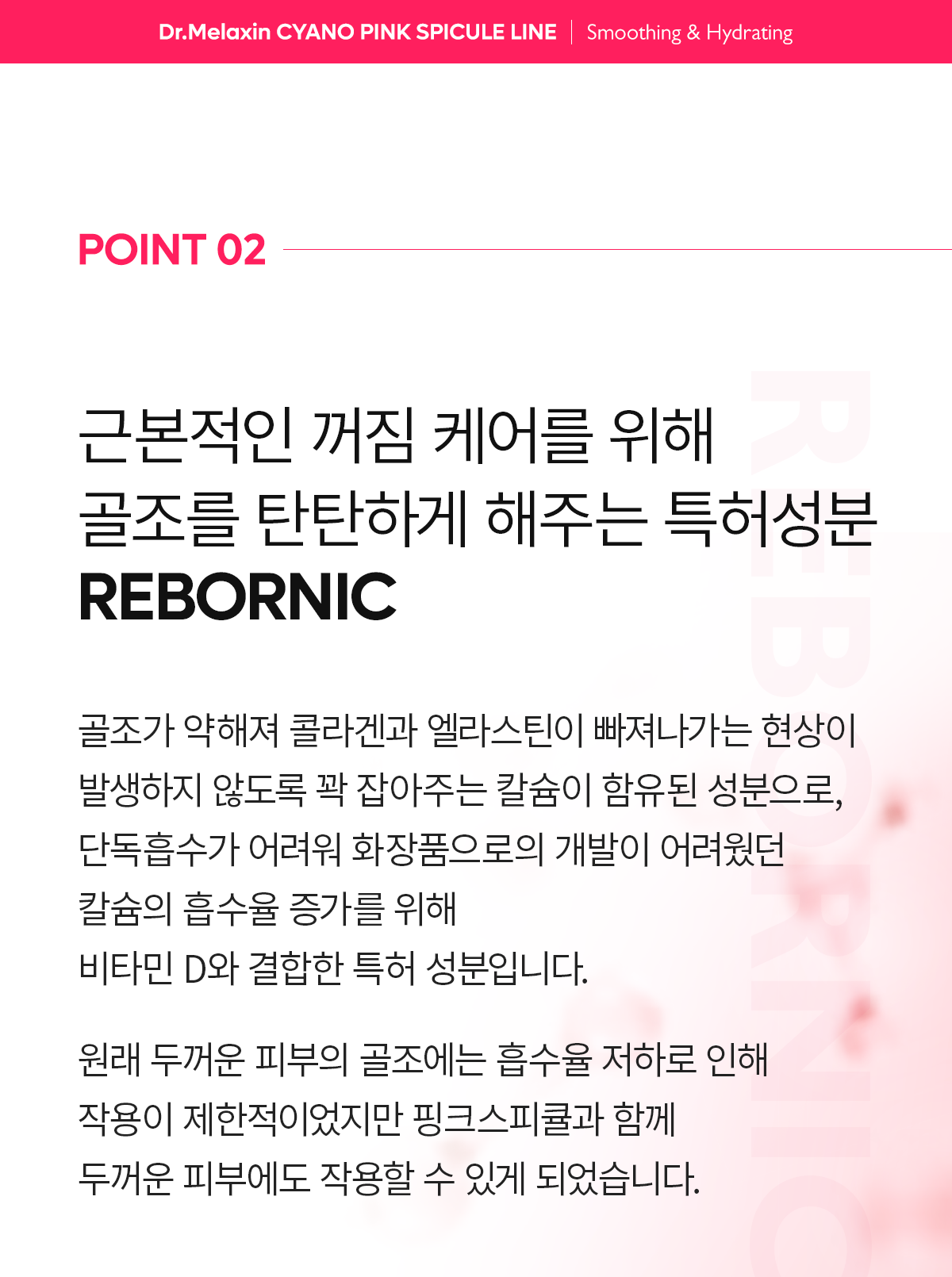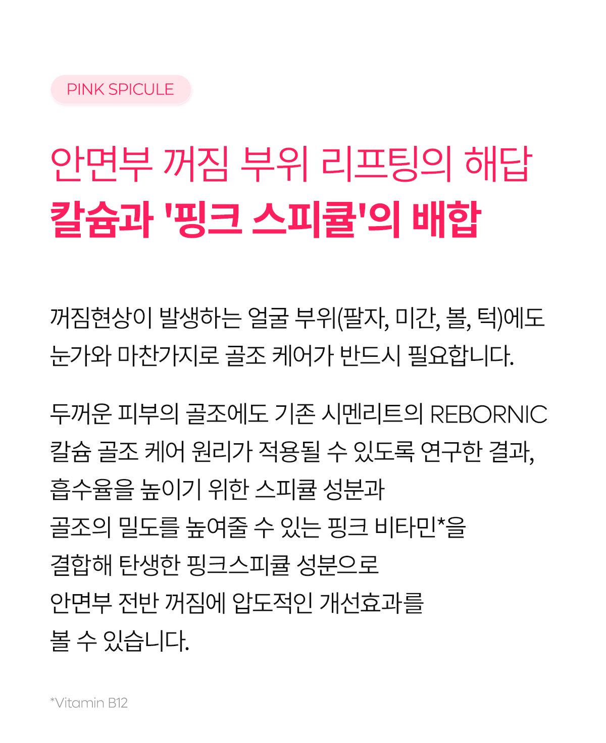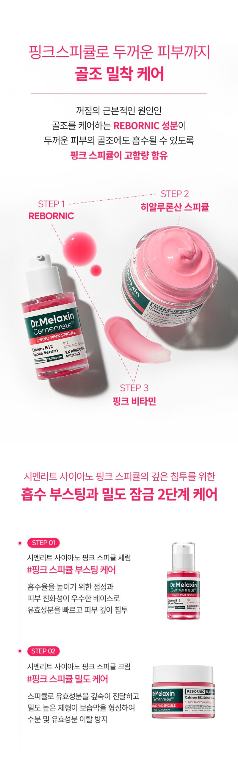 - Specialized Care for Thick Skin and Structural Frameworks: High-content pink spicules help deliver REBORNIC’s patented ingredients deep into the skin.