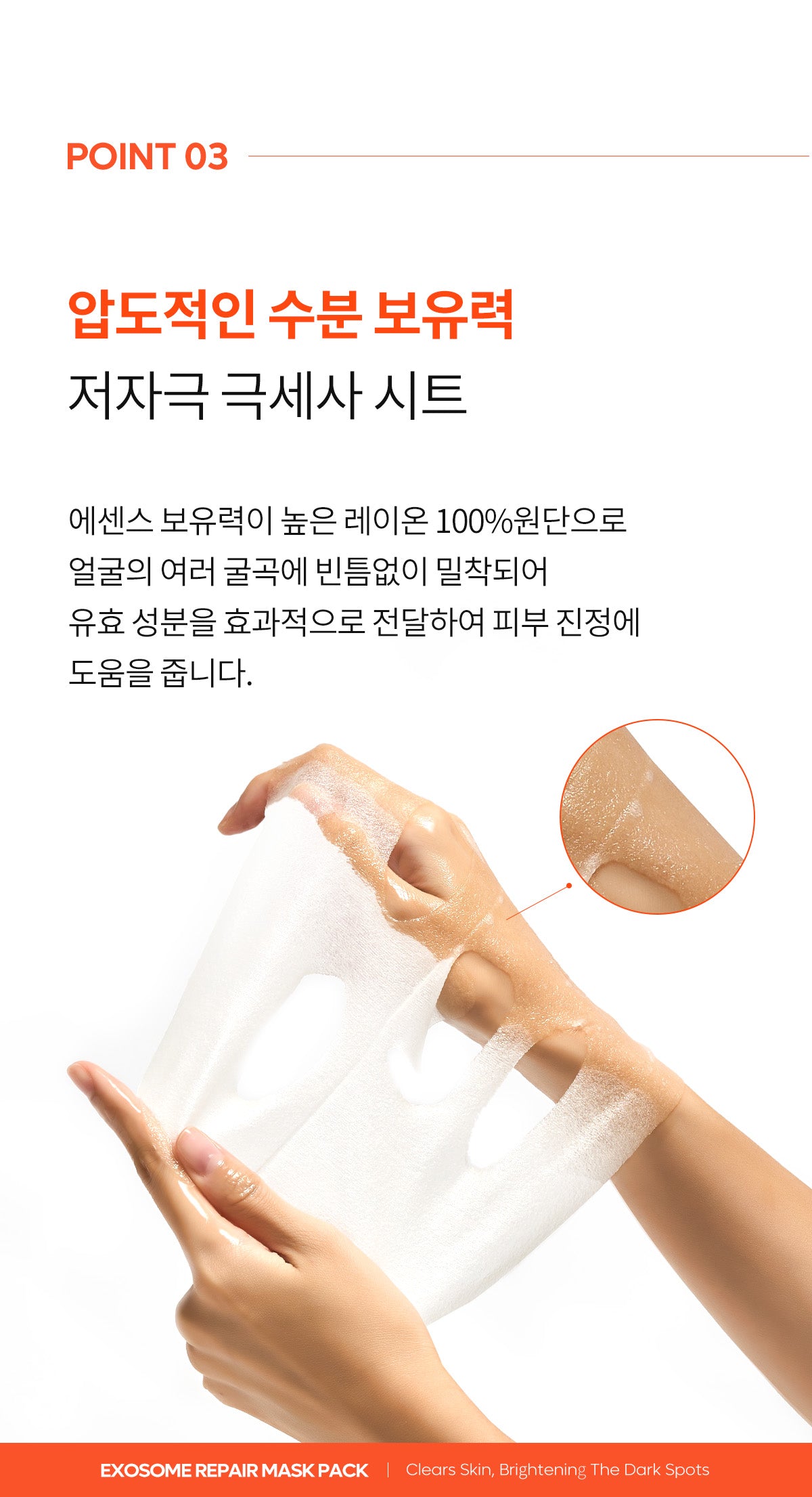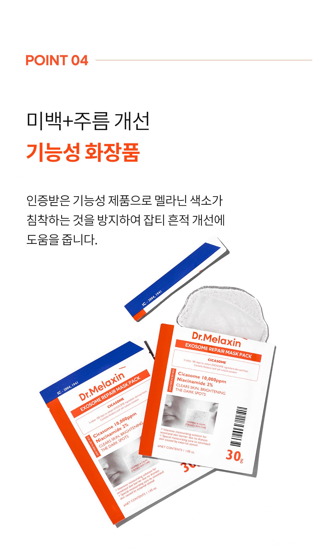 I recently tried the Dr.Melaxin Exosome Repair Mask Pack and was pleasantly surprised by its effectiveness. The patented Cica-Exosomes really stand out, offering intensive soothing and regeneration. After using these masks for a week, my skin felt noticeably calmer, with reduced inflammation from previous breakouts. I also appreciated how they visibly helped fade some of my dark marks without any irritation, which is often an issue for me due to sensitive skin. The texture of the mask was luxurious and it adhered well without slipping off during use.