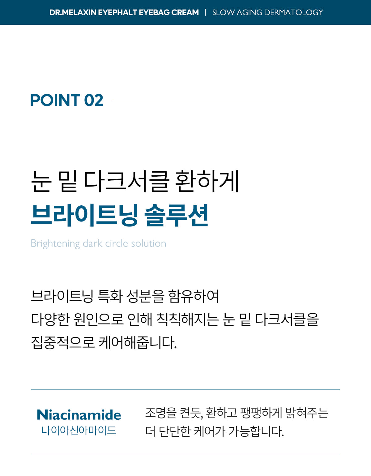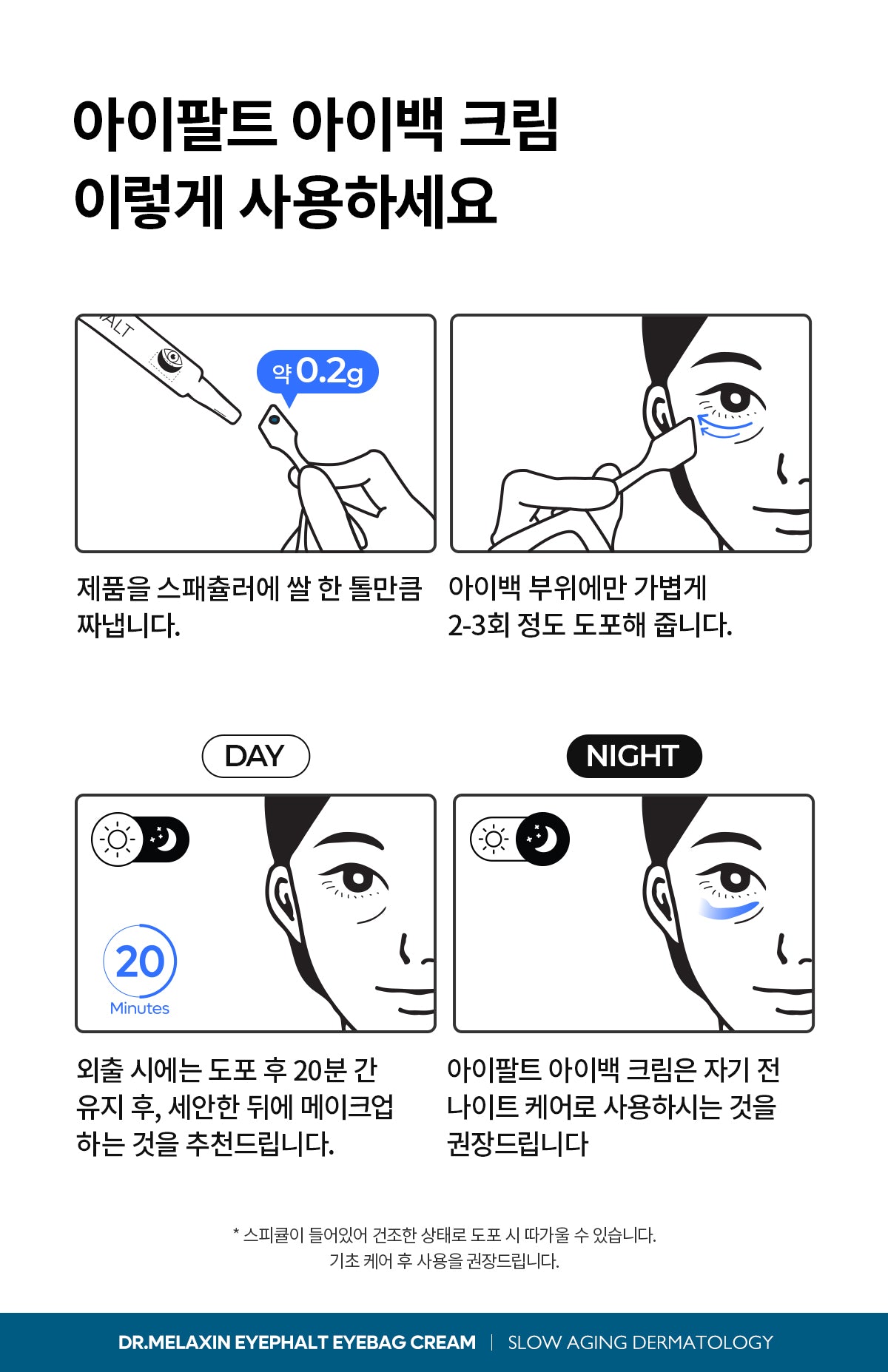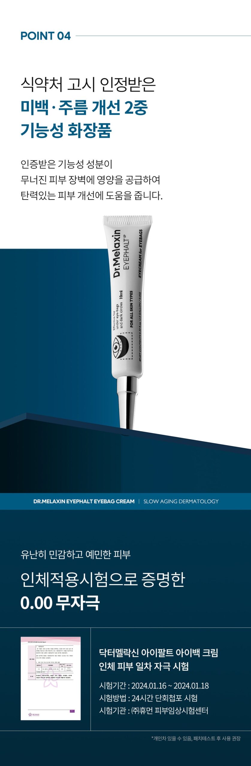 Discover the ultimate solution for all eye concerns with Dr. Melaxin Eyephalt Eye Cream. Clinically proven to deliver visible results for eye bag volume and wrinkle improvement with just one use. A premium slow-aging dermocosmetic brand, specially designed to address various skin concerns, from dark circles to under-eye hollows.