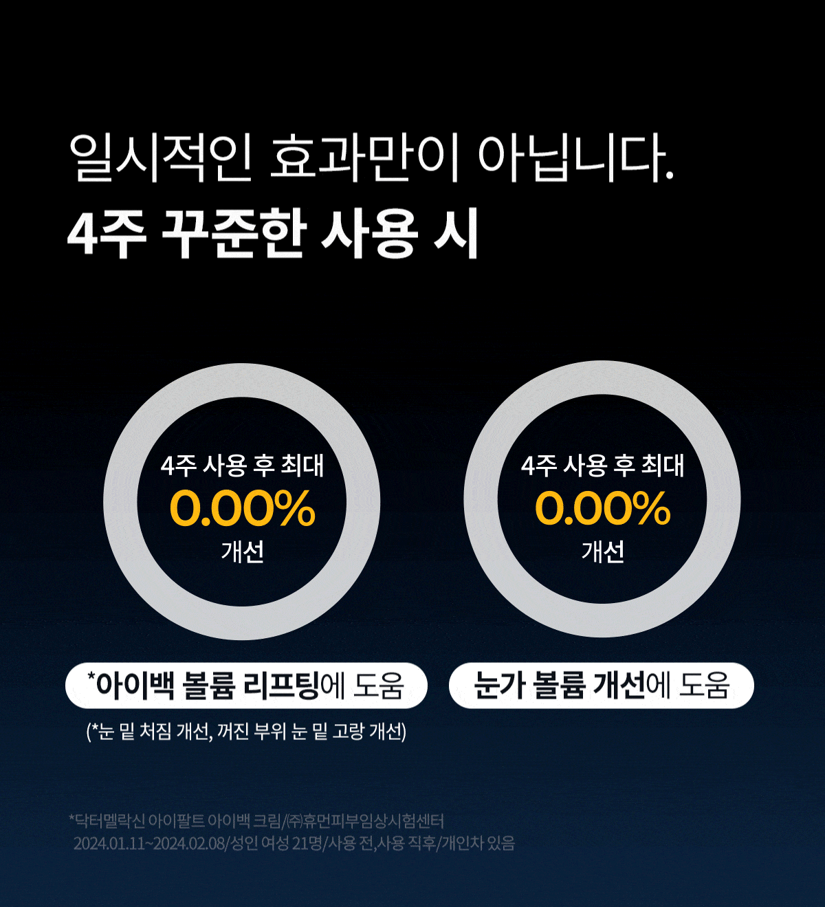 • Eye Bag Volume Improvement: Up to 156.67% improvement in one application.