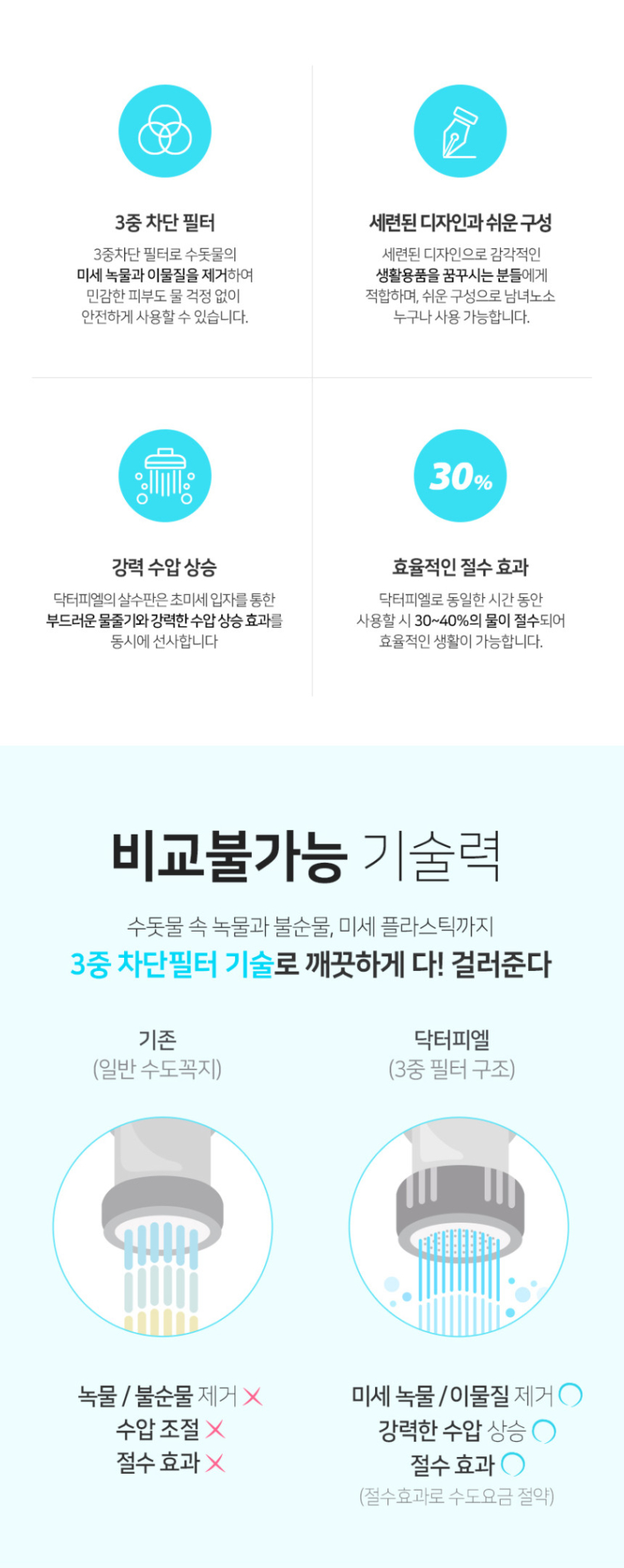 - 574 Micro Holes: Ultra-fine spray plate delivers strong water pressure while maintaining soft water flow