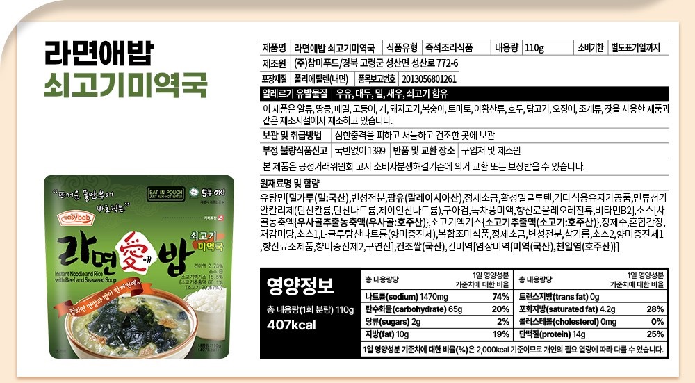 Introducing Eazybab Ramen-Ae-Bab Nagasaki Jjamppong, a quick and convenient Korean-style meal combining savory ramen noodles with steamed Korean rice, all infused with the rich, creamy flavor of Nagasaki-style jjamppong. No pots, no bowls—just satisfying comfort food anywhere, anytime.