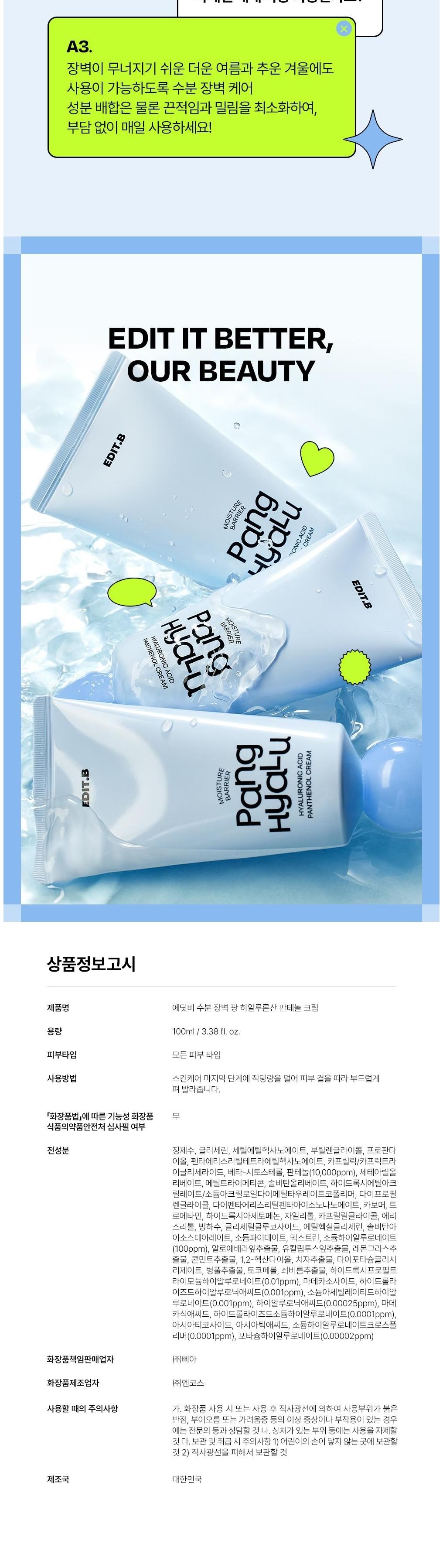| Product Name | EDIT.B Moisture Barrier Pang Hyaluronic Acid Panthenol Cream |