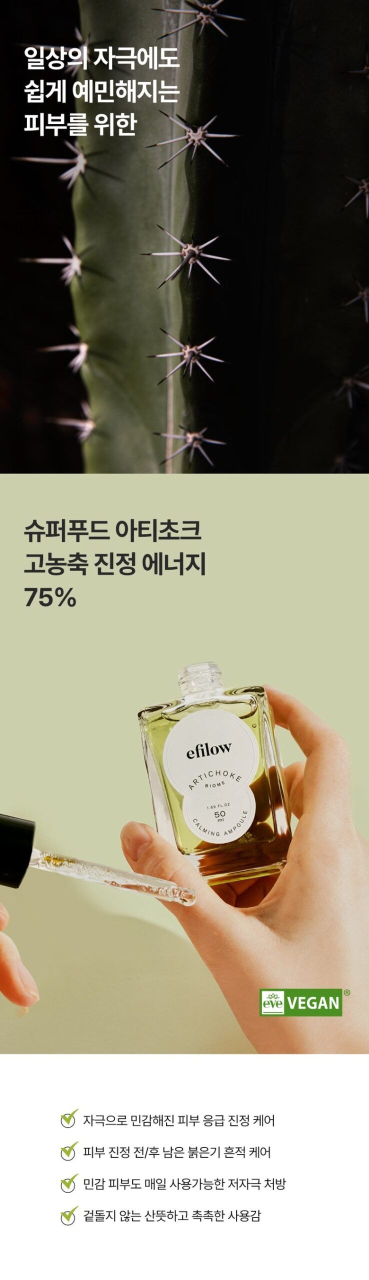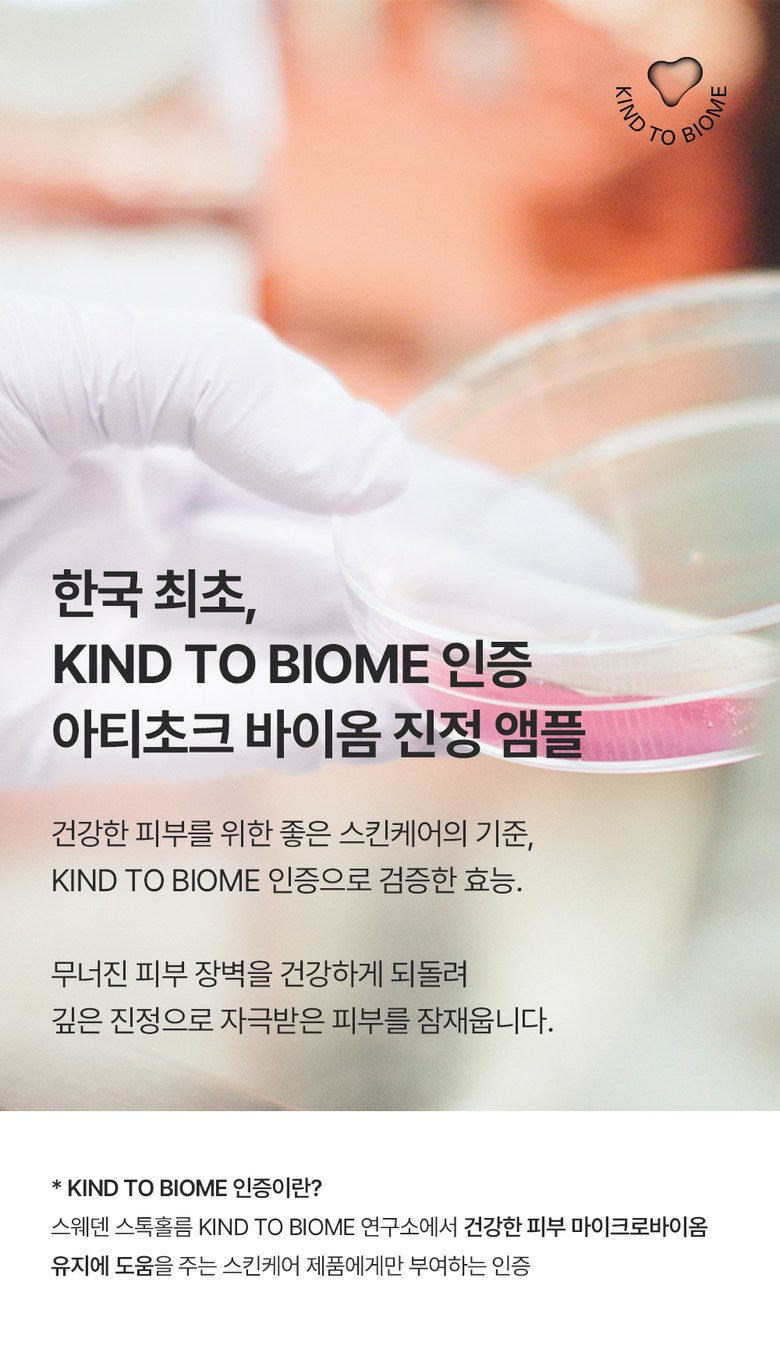 A calming ampoule containing artichoke, a superfood that quickly soothes sensitive skin, to restore hot and red skin barrier to health.