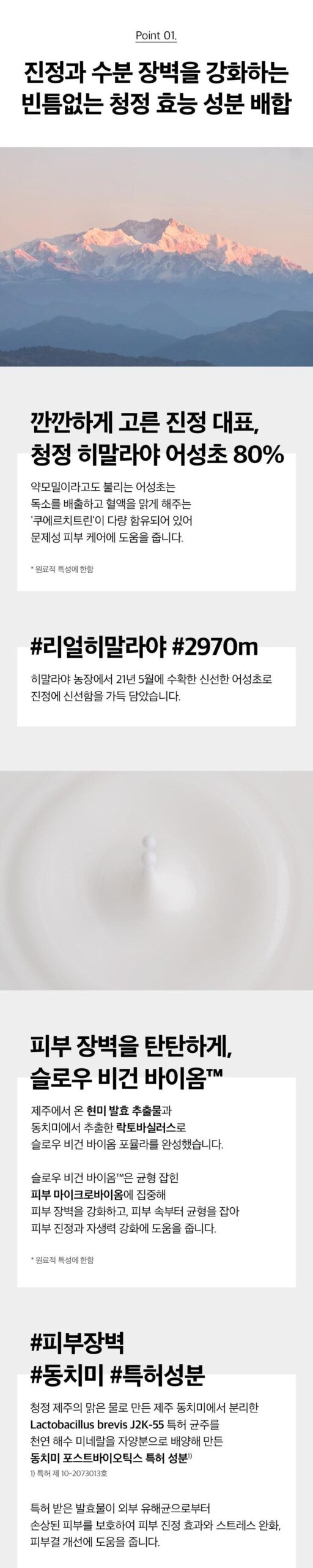 *Himalayan Houttuynia cordata obtained from clean, unpolluted nature comfortably soothes skin irritated by the external environment and stress, creating clear and healthy skin.
