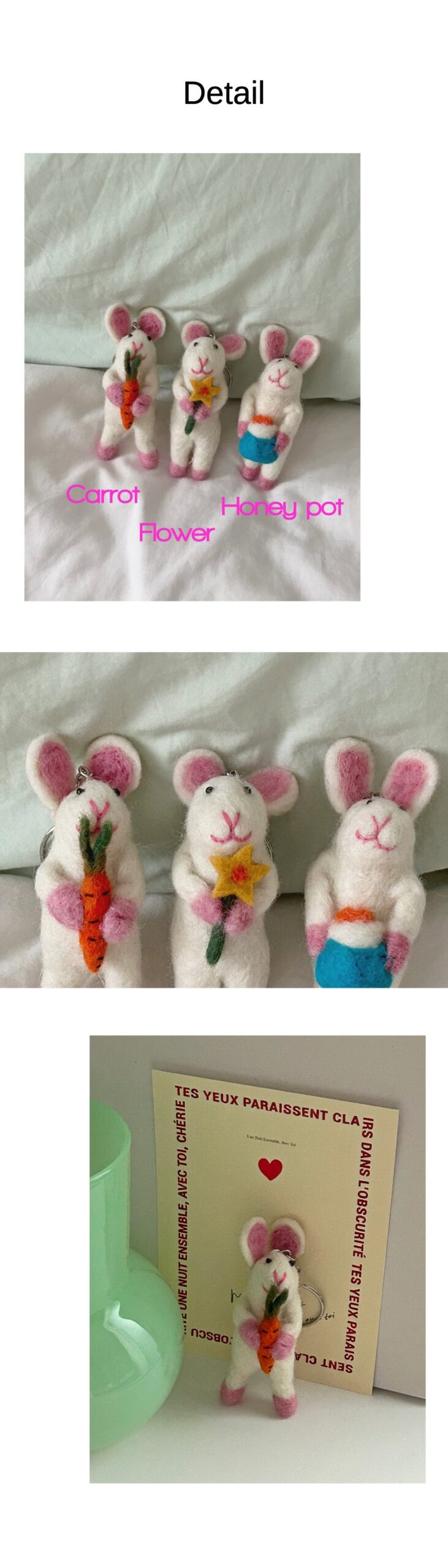 Móc khóa hình thỏ này thật dễ thương, luôn mang lại niềm vui và cái nhìn tươi sáng cho chiếc túi của tôi! Khách hàng nào cũng sẽ say mê chúng.