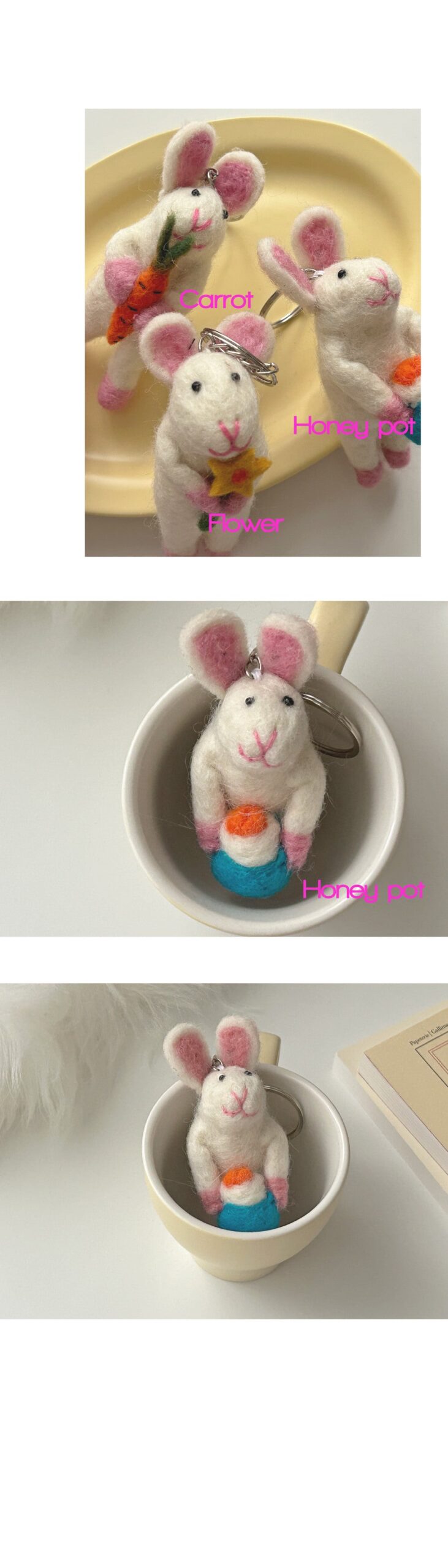 Discover the delightful ‘Pink Rabbit Keyring’, a charming accessory that combines practicality with cuteness. This lovely rabbit keyring is perfect for adding a touch of whimsy to your bags and cell phones. Choose from three adorable designs, each designed to bring a smile to your day.