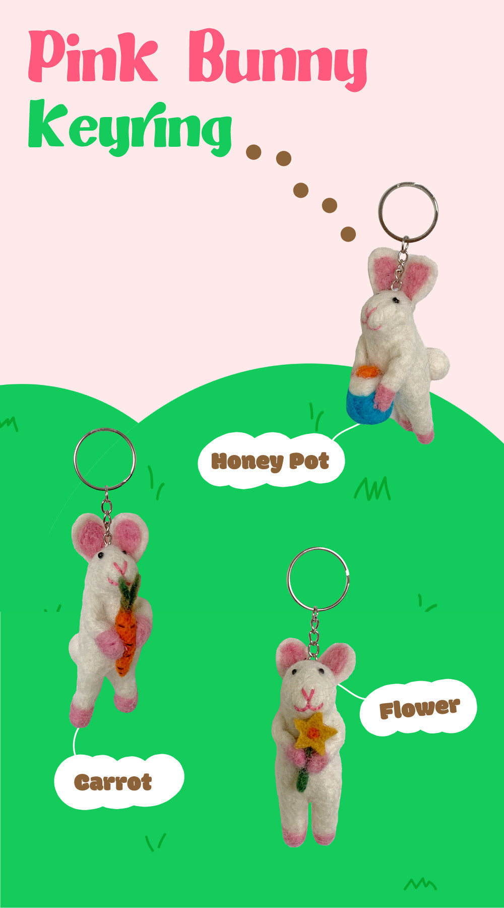 Discover the delightful ‘Pink Rabbit Keyring’, a charming accessory that combines practicality with cuteness. This lovely rabbit keyring is perfect for adding a touch of whimsy to your bags and cell phones. Choose from three adorable designs, each designed to bring a smile to your day.