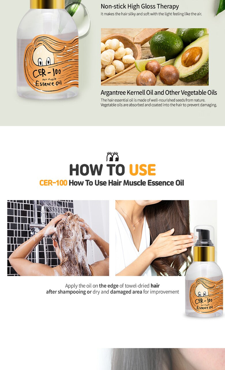Experience the transformation of your hair with Elizavecca Hair Muscle Essence Oil CER-100, giving you the ultimate in hair care and shine.