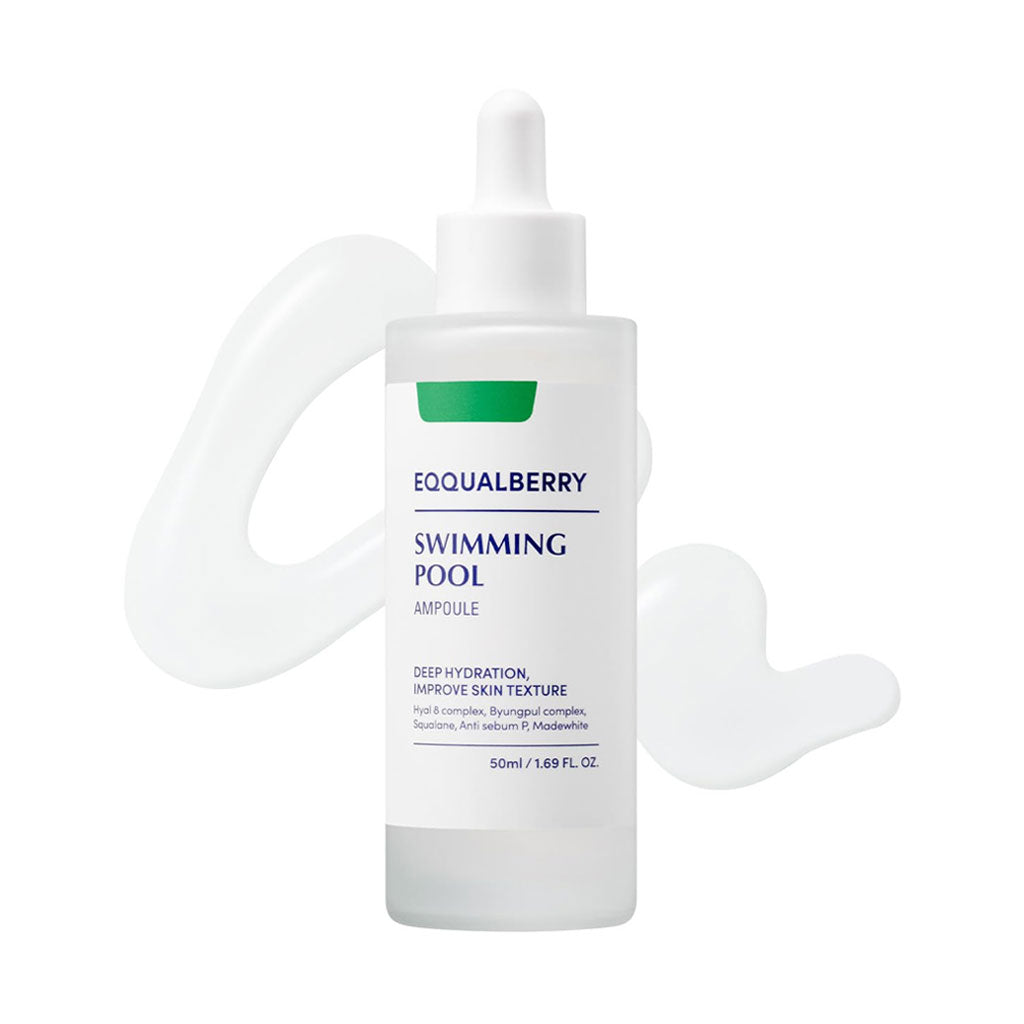 The Eqqualberry Swimming Pool Ampoule is a vegan ampoule that dives deep into the skin for long-lasting hydration. Formulated with Hyal 8 Complex™ to deliver multi-layered hydration and combat dryness at every level, while Anti-Sebum P controls excess oil production and helps prevent enlarged pores. Also blended with 5-Cica Recipe featuring skin-soothers such as Centella Asiatica Extract and Madecassoside to deeply calm sensitive skin. This ampoule has a fast-absorbing texture that leaves skin feeling hydrated and refreshed.