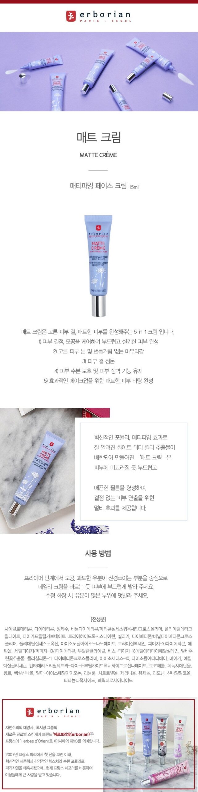 最近、このエルボリアンのマットクリームを試しましたが、その結果にはとても満足しています。肌に滑らかさと同時に透明感を与える独自のテクスチャーは、見た目だけでなく手触りも素晴らしいです。このクリームを顔全体ではなく、特におでこや鼻などオイリーになりやすい部分につけてみました。まるでベルベットのようなフィニッシュになって驚きました!また、白いウォーターリリーエキスが含まれている点も嬉しいですね。本当にバランス良く肌の状態を整えてくれる感じがします。他社製品より明らかに長時間持続するので、とてもコストパフォーマンスが高いと思います。