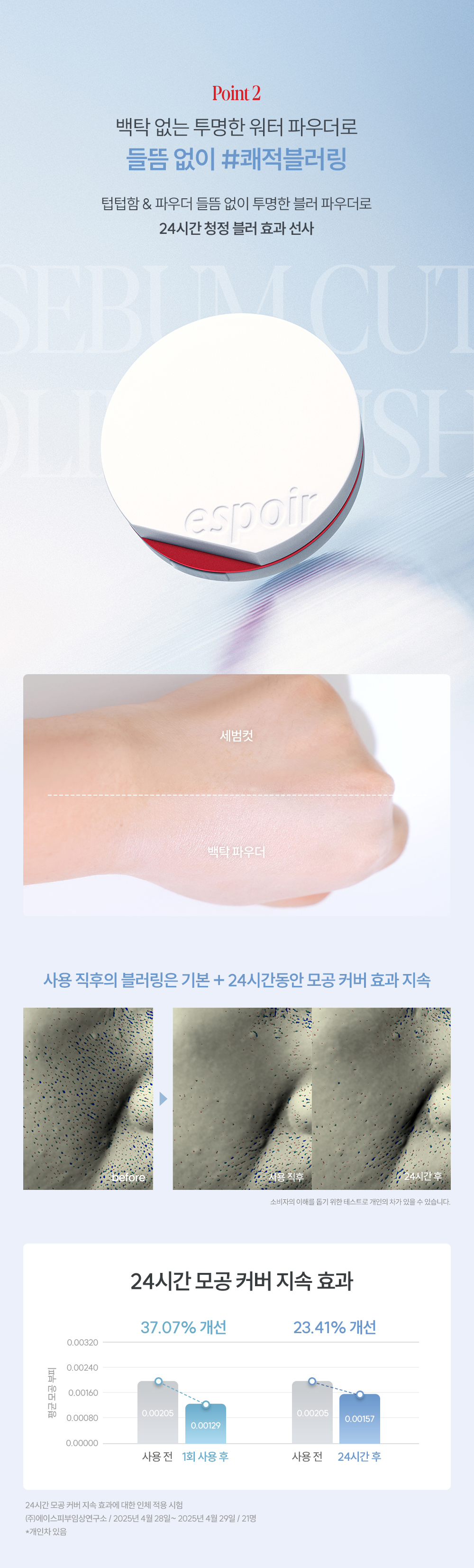 Witness the immediate transformation! The ESPOIR Be-Velvet Sebum Cut Cooling Cushion is engineered to reduce skin temperature by an impressive -0.1°C instantly, with a total cooling effect of -5.7°C. Imagine your skin going from a warm 35.85°C to a comfortable 30.16°C, all while maintaining a perfect matte finish. It’s rapid cooling for a refreshed complexion that lasts up to 24 hours.