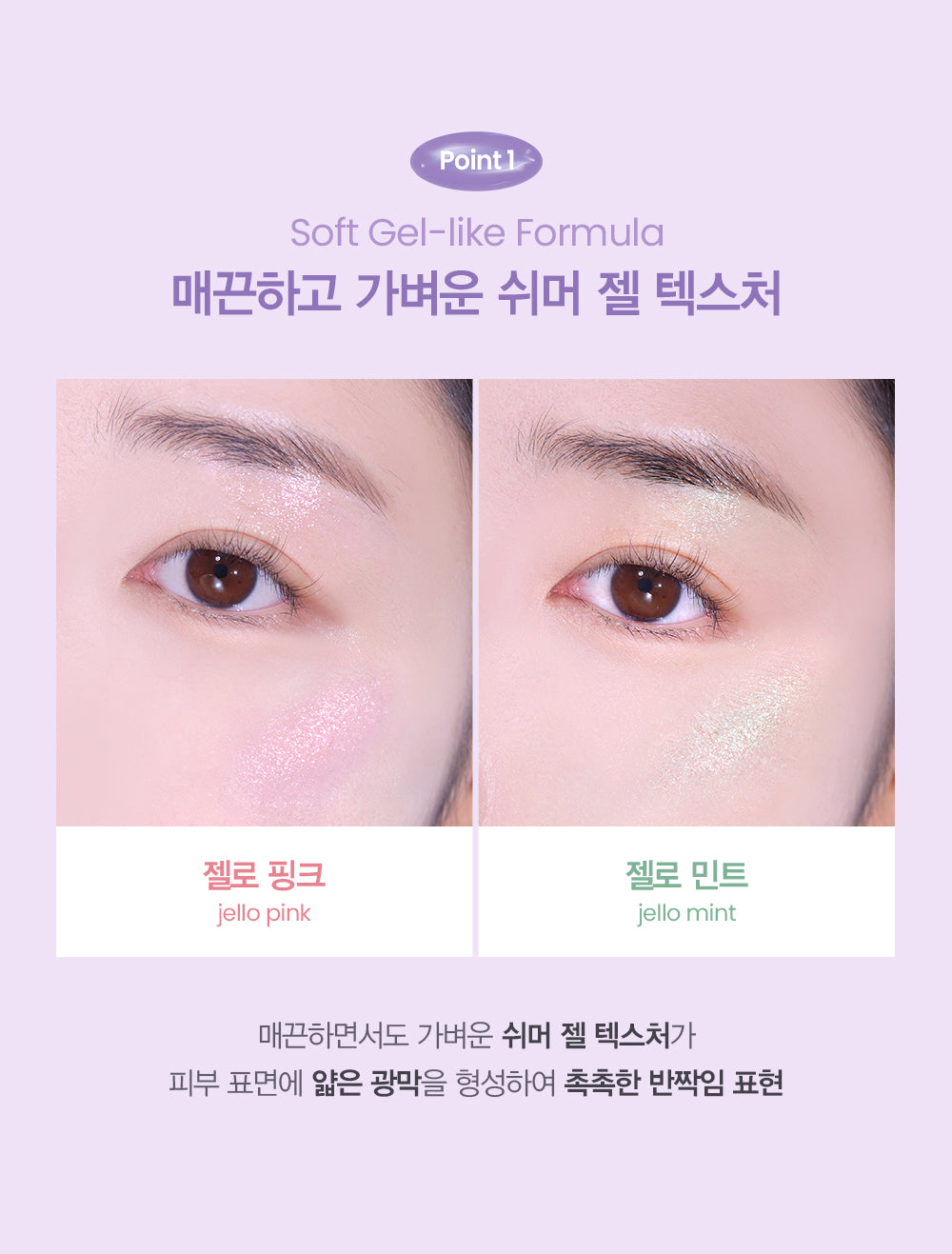 - Smooth & Lightweight Texture: The lightweight shimmer gel forms a thin, glossy film on the skin’s surface, providing a moist, glistening finish without any sticky feel.