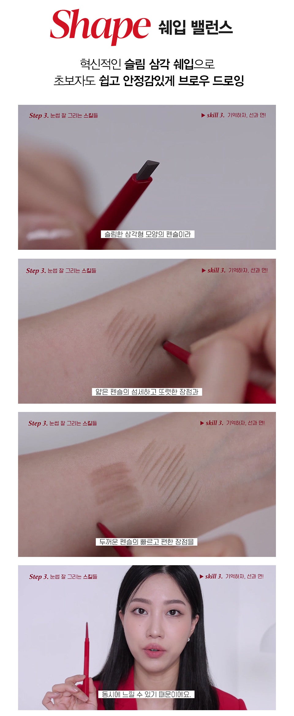 Innovative slip triangle shape makes brow drawing easy and stable even for beginners