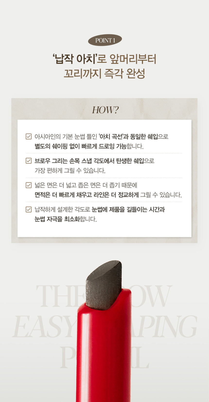 - The flat arch tip mirrors the natural curve of your brows, allowing you to create the perfect shape effortlessly.