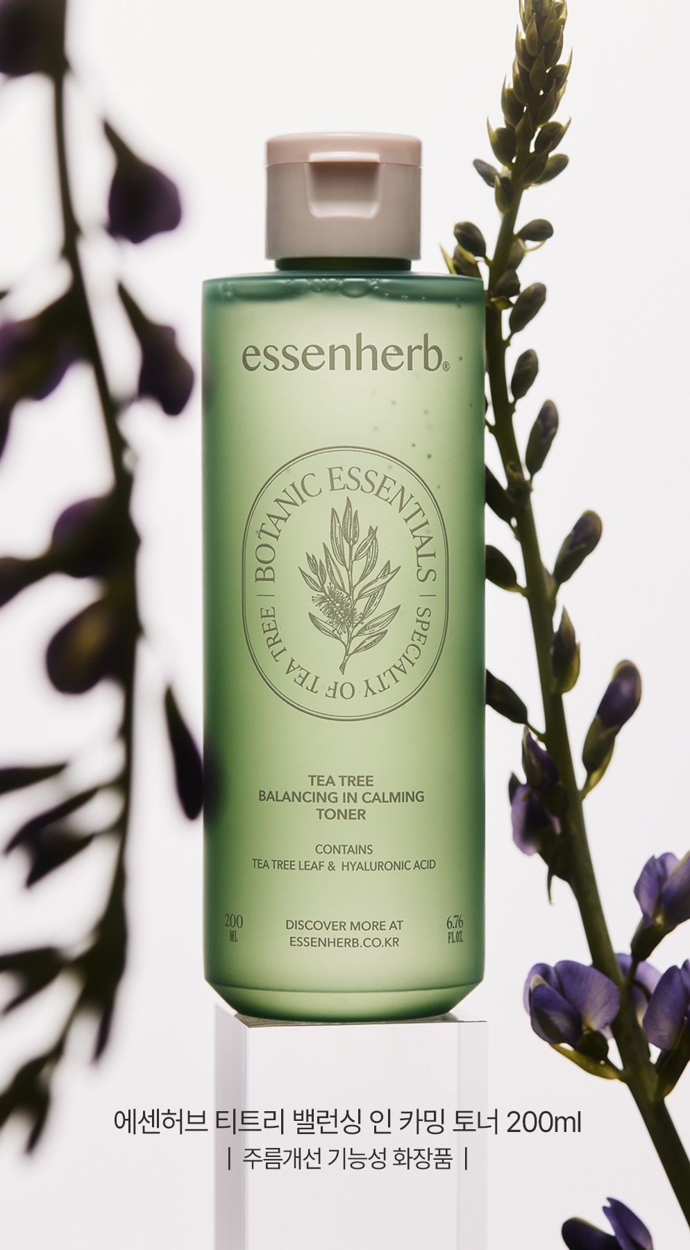 The ESSENHERB Tea Tree Balancing In Calming Toner combines tea tree leaf extract with hyaluronic acid for a soothing, balancing skincare experience. This Botanic Essentials formula calms irritated skin while maintaining optimal moisture balance.