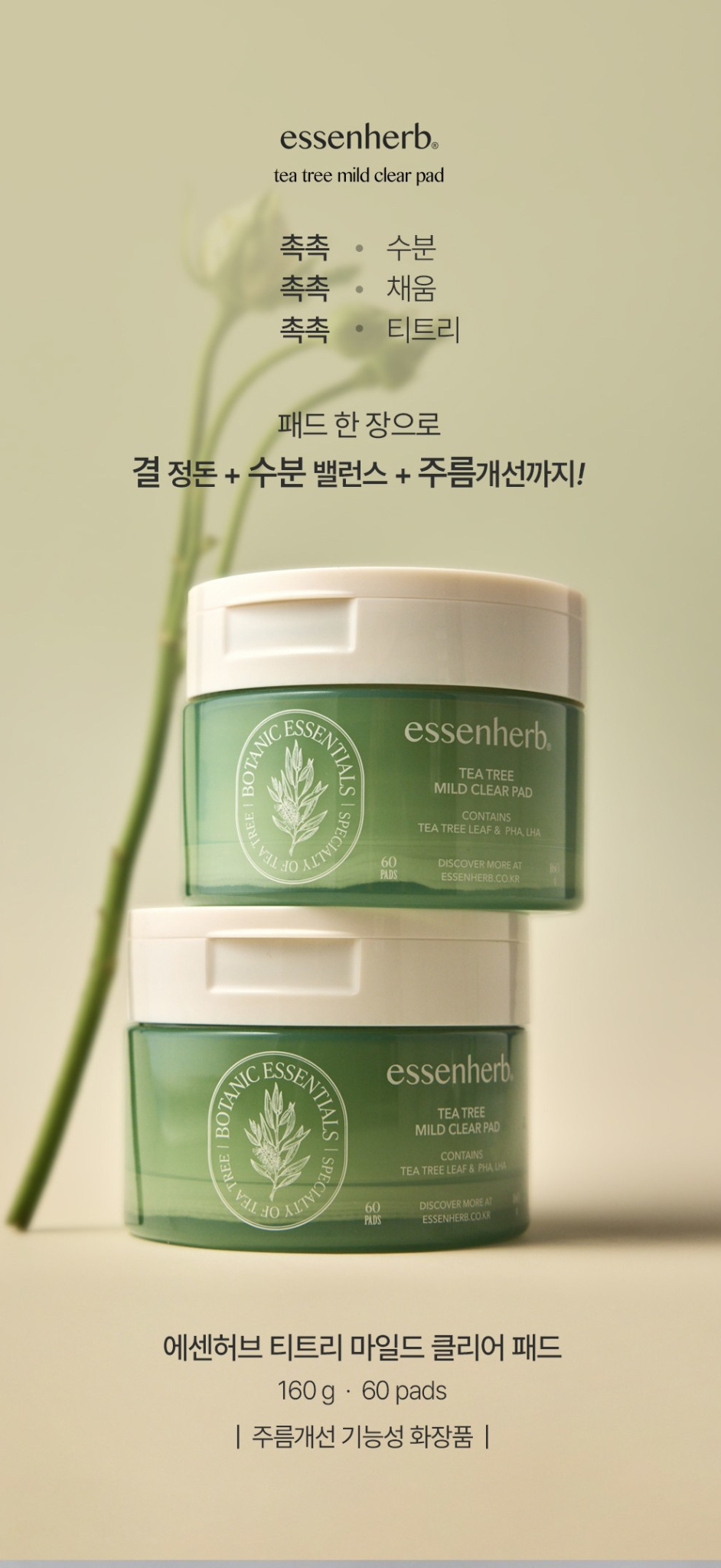 ESSENHERB Tea Tree Mild Clear Pad 60p 160g – Gentle Exfoliating Toner Pads