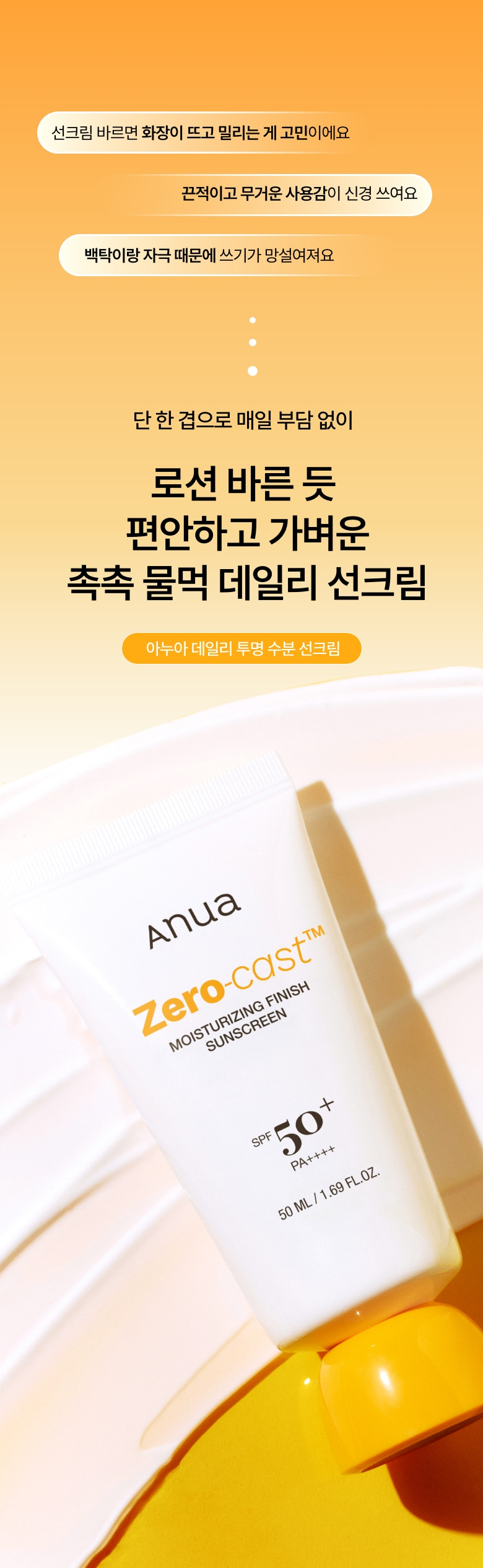 Enjoy light, breathable, and skin-caring sun protection every day with Anua Zero-cast™ Moisturizing Finish Sunscreen – where sun care meets skincare. 🌞💧