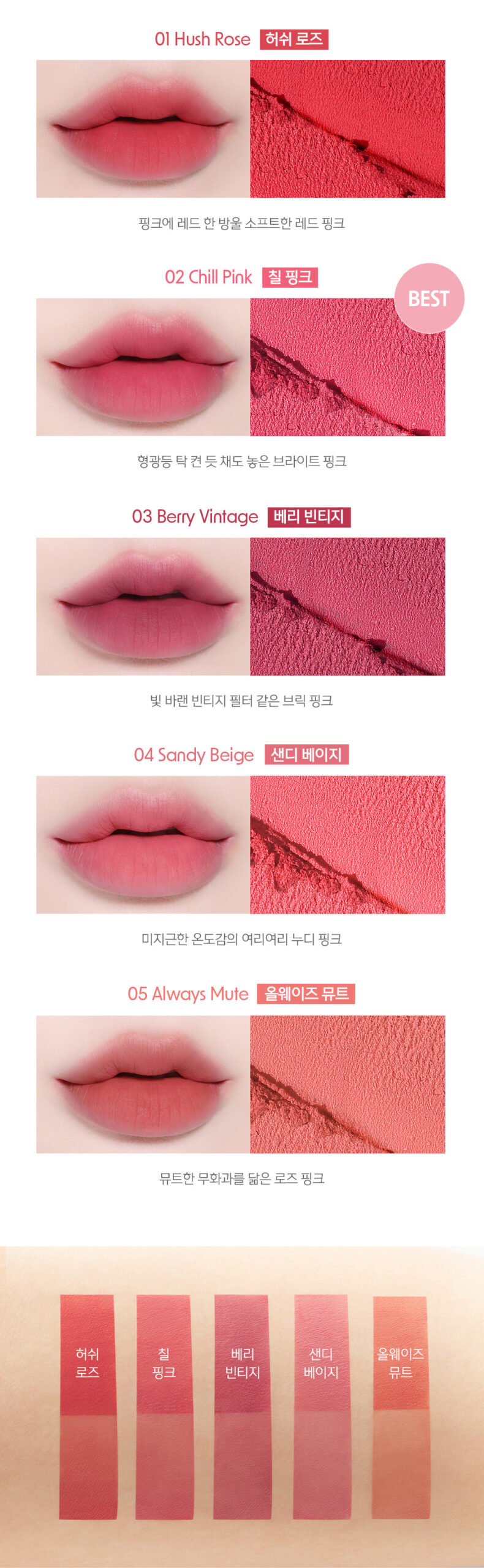 Curated specifically for cool-toned complexions, this pink color lineup enhances your natural beauty. Whether you’re going for a subtle everyday look or a bold statement, these shades transition effortlessly from daily to special occasions.