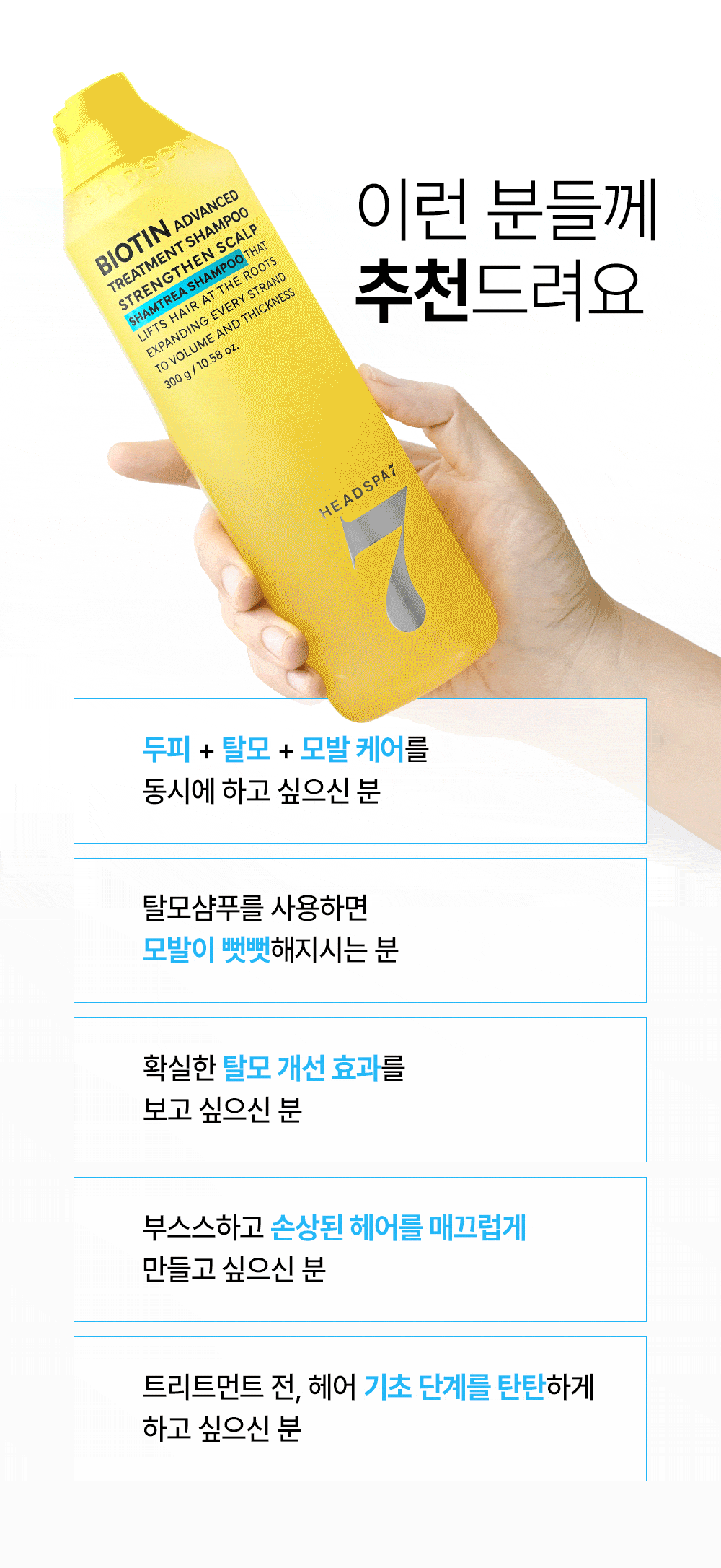 Meet the HeadSpa7 Biotin Advanced Treatment Shampoo, a groundbreaking “Shamtrea” product that combines the benefits of a hair loss care shampoo and a treatment in a single step. This advanced formula targets weakened hair roots and dry, damaged strands to give you visibly stronger, healthier hair from root to tip.