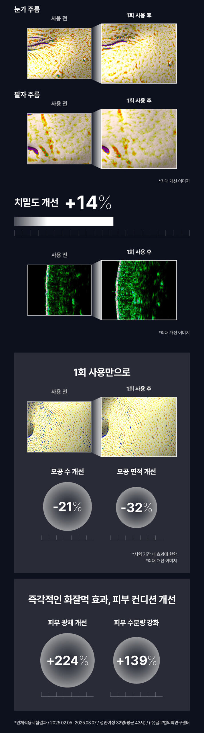 Pore Refinement: Effectively reduces pore count and area, promoting a smoother skin texture.