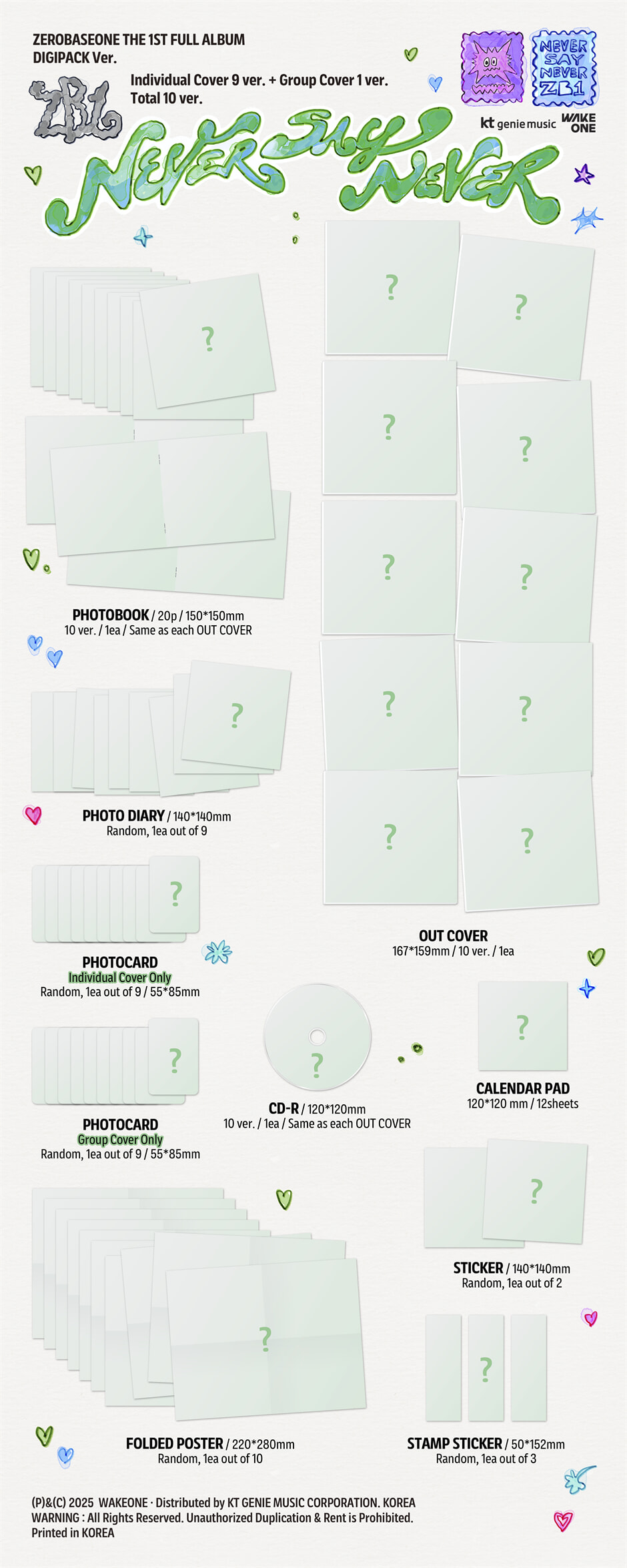 Following the “Youth Trilogy” and “Paradise Duology,” this album represents the iconic moment where “Team ZEROBASEONE” comes together, united in their shining ambition. Just as they have proven from Boys Planet to now, ZEROBASEONE sends a powerful message to all who dream of something extraordinary in an ordinary world: if you never give up, nothing is impossible—NEVER SAY NEVER.