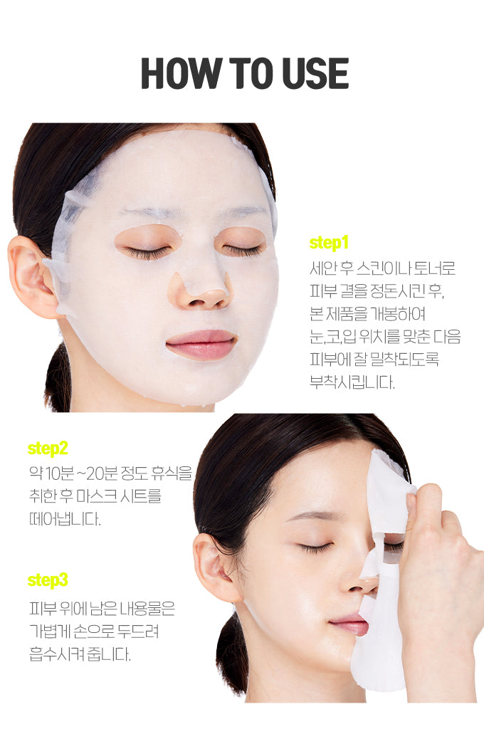 1. After washing your face and adjusting your skin texture with toner or toner, open this product, align the eyes, nose, and mouth, and attach it so that it adheres well to the skin.