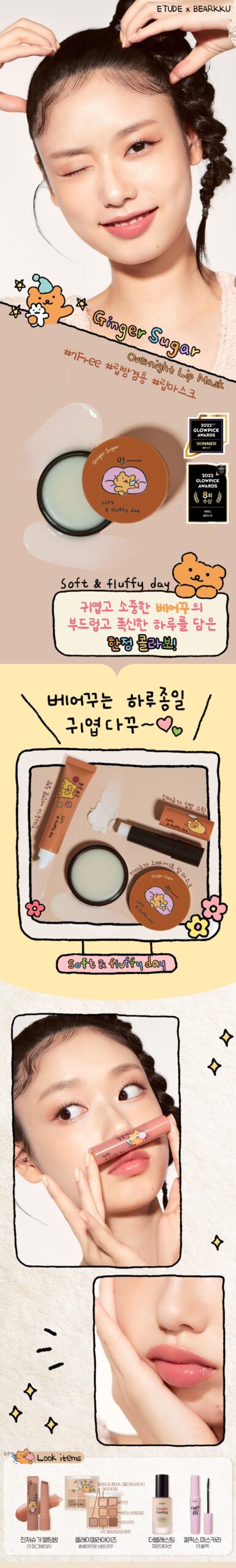 Alright, so I’ve been using the ETUDE Bear Ginger Sugar Overnight Lip Mask for a couple weeks now and let me tell ya, it’s pretty fab! First off, that shea butter combo works wonders. My lips have gone from dry and flaky to smooth as silk overnight! I usually slap some on right before bed – it feels like I’m giving my lips a big ol’ hug of moisture. Also love that there’s no sketchy stuff in it; just solid ingredients doing their job without any drama. The ginger scent is kinda nice too—gives me cozy vibes while I sleep. Totally recommend if you wanna wake up with kissable lips!