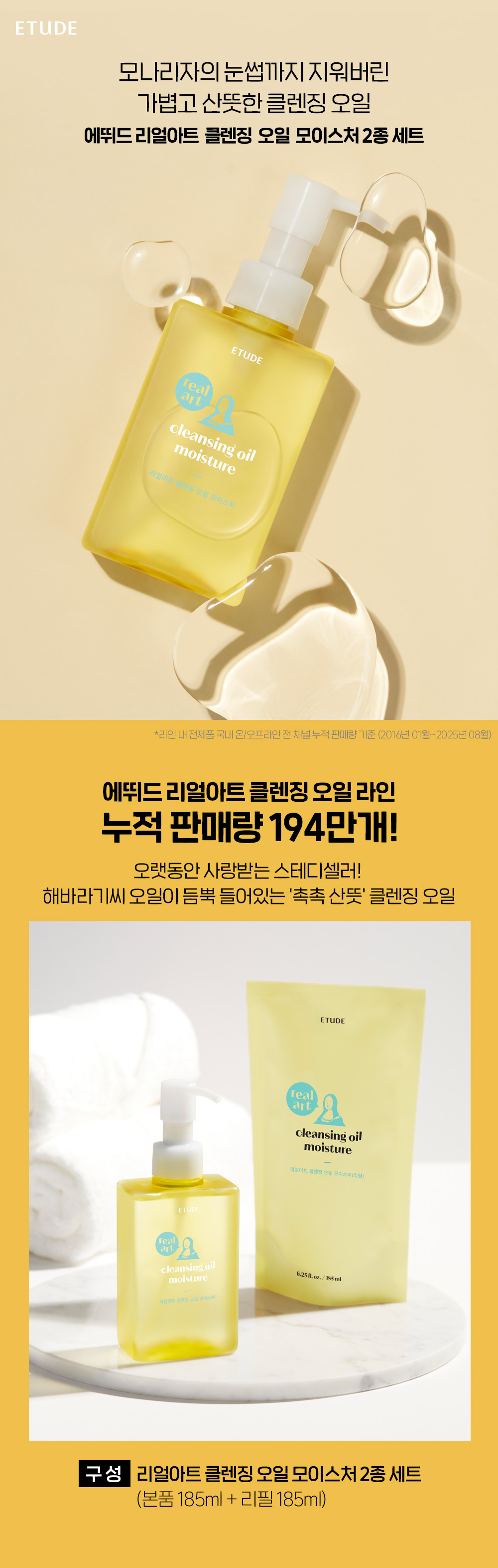 ETUDE Real Art Cleansing Oil Moisture Set (185ml + Refill 185ml)