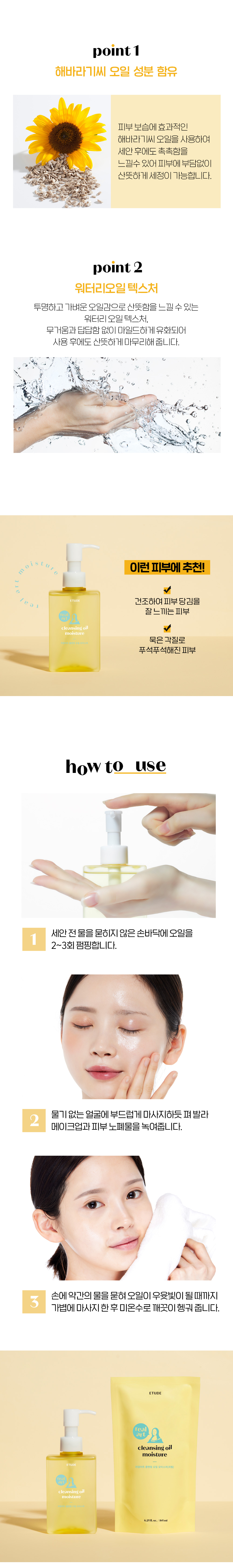 - ETUDE Real Art Cleansing Oil Moisture 185ml (Refill Pouch): An economical and environmentally friendly refill pack to replenish your bottle, ensuring you never run out of your favorite cleanser.