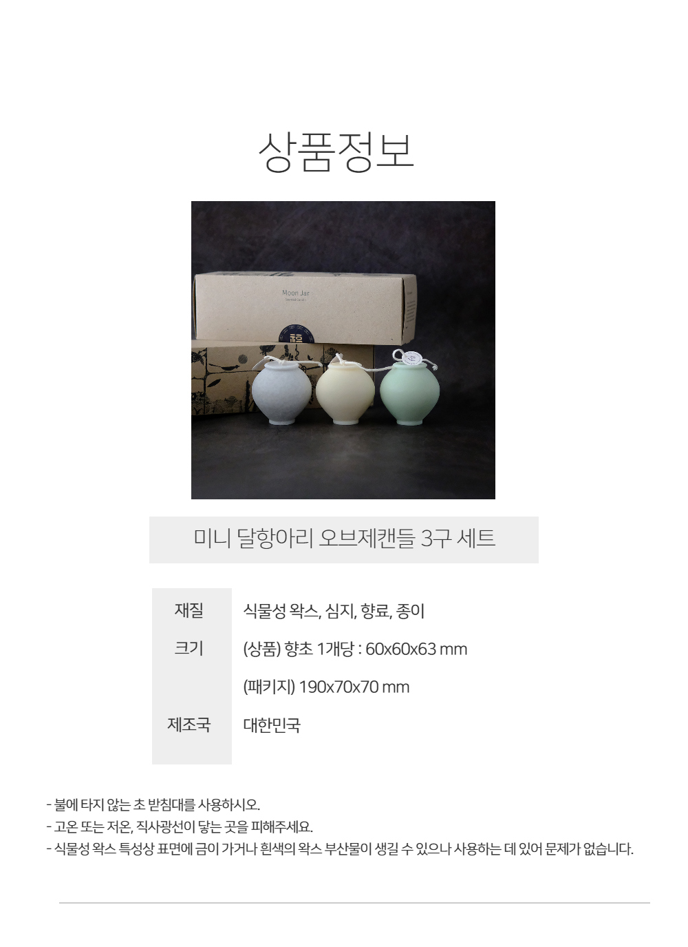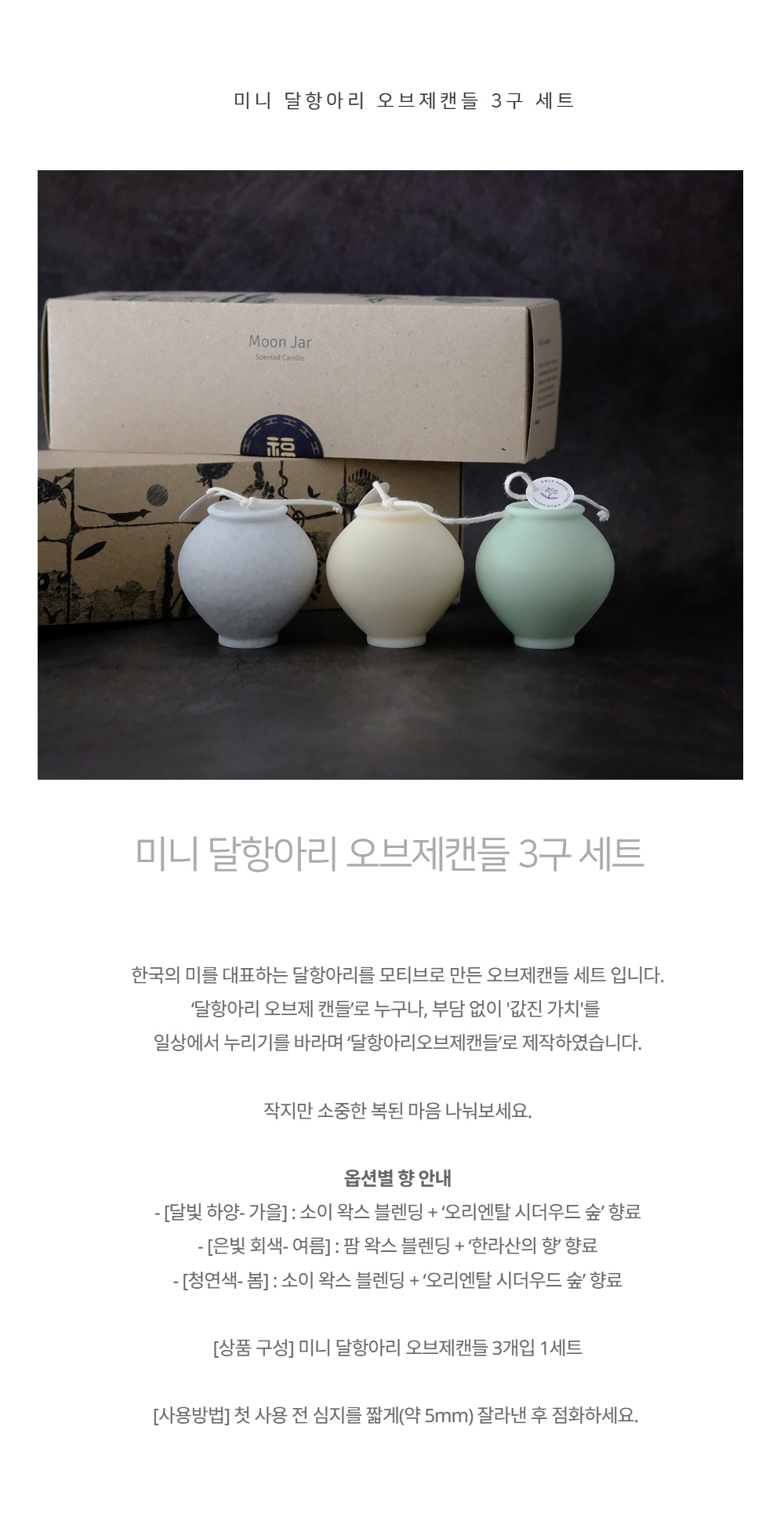 - One (1) set of three (3) Mini Moon Jar Object Candles.