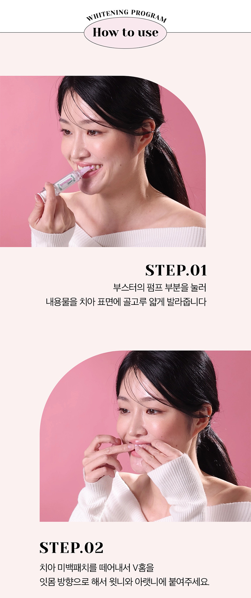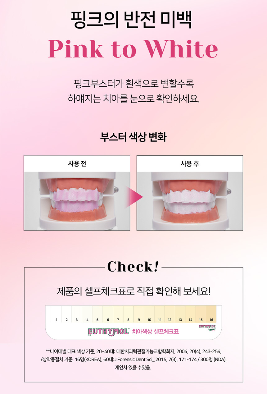 As the pink booster turns white, check the whitening teeth with your own eyes.