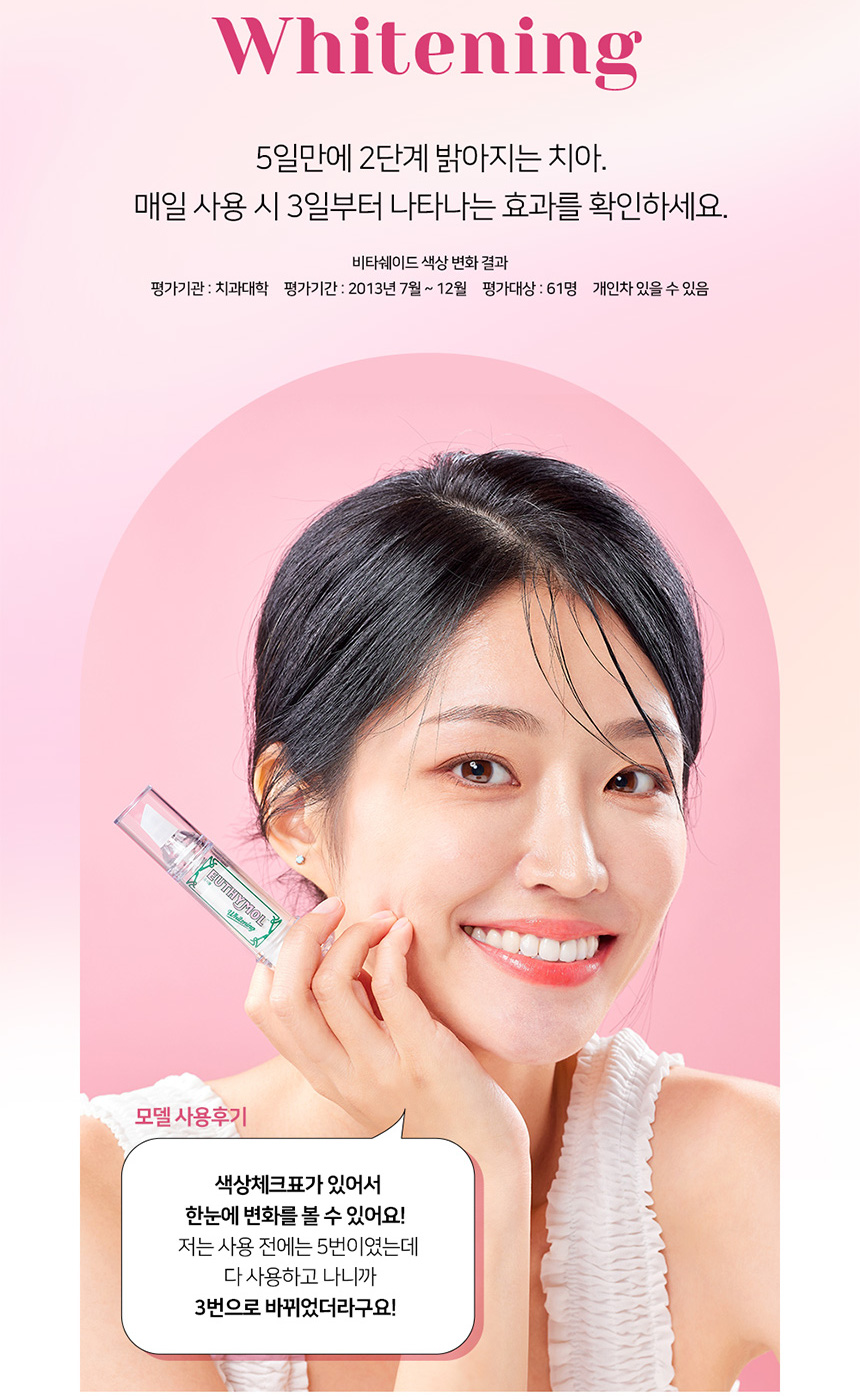 It is a whitening agent prescription that has secured a patent (Patent No. 10-1697246) for oral irritation relief.