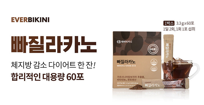 Achieve your weight loss goals with EVERBIKINI Ppagillacano Diet. Packed with functional ingredients and designed for convenient consumption, this large 60-stick package delivers effective fat reduction while providing a delicious coffee flavor.