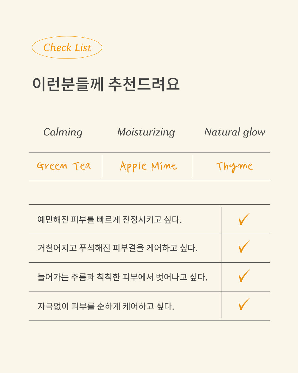 Dive into a sea of calm with our unique blend of three herbal ingredients, each selected for their soothing properties. Our toner is infused with Calm Green™, a patented ingredient (Patent 10-1879315), known for its intensive care for sensitive skin. Alongside this, the power of Apple Mint, Thyme, and Green Tea work in harmony to quickly soothe irritated skin and reinforce the skin’s barrier.