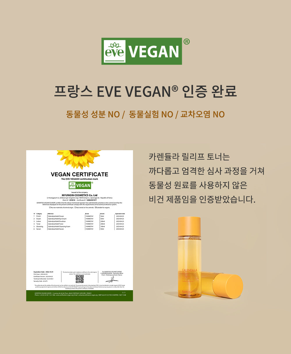 So, I just got my hands on the Farmstay Calendula Relief Toner and wow, can we talk about how pretty this packaging is? The box has a nice matte finish that feels really high-end—definitely not your typical drugstore stuff. As soon as I opened it up, there was a little leaflet inside with all these beautiful illustrations of the ingredients. The bottle itself is super sleek; it’s made from frosted glass which makes me feel like I’m handling something fancy! And it’s not too heavy either—I could totally see bringing this along for travels without stressing over breakage. Overall, just love how thoughtful the whole unboxing experience was—it honestly felt special to treat myself to some skincare goodness.