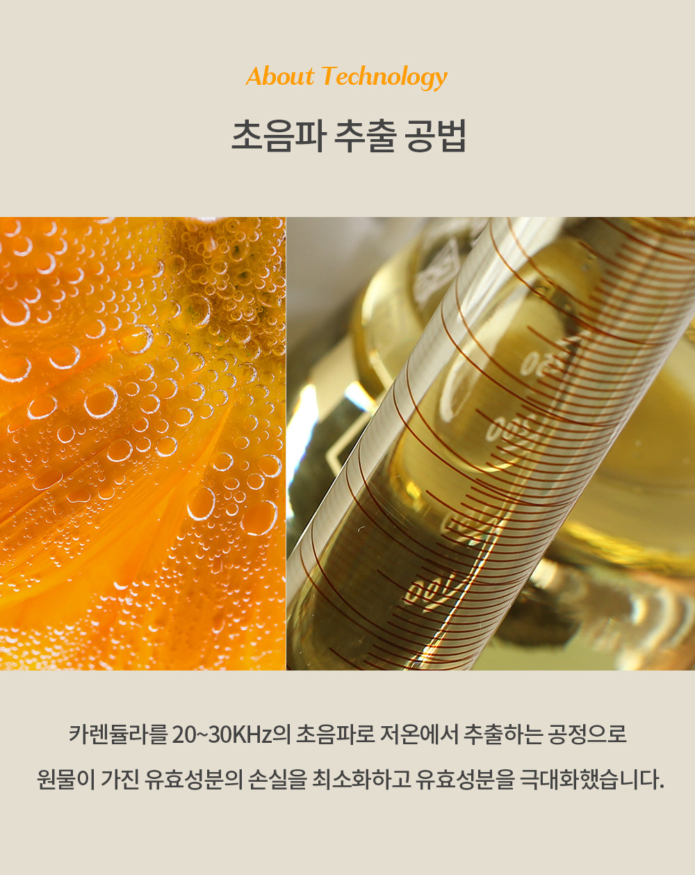- Calendula: Utilizing an ultrasonic extraction method, we extract calendula at low temperatures to minimize the loss of active ingredients, soothing sensitive skin and enhancing its condition.
