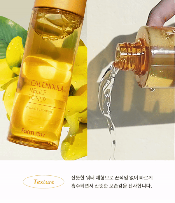 So, I just got my hands on the Farmstay Calendula Relief Toner and wow, can we talk about how pretty this packaging is? The box has a nice matte finish that feels really high-end—definitely not your typical drugstore stuff. As soon as I opened it up, there was a little leaflet inside with all these beautiful illustrations of the ingredients. The bottle itself is super sleek; it’s made from frosted glass which makes me feel like I’m handling something fancy! And it’s not too heavy either—I could totally see bringing this along for travels without stressing over breakage. Overall, just love how thoughtful the whole unboxing experience was—it honestly felt special to treat myself to some skincare goodness.