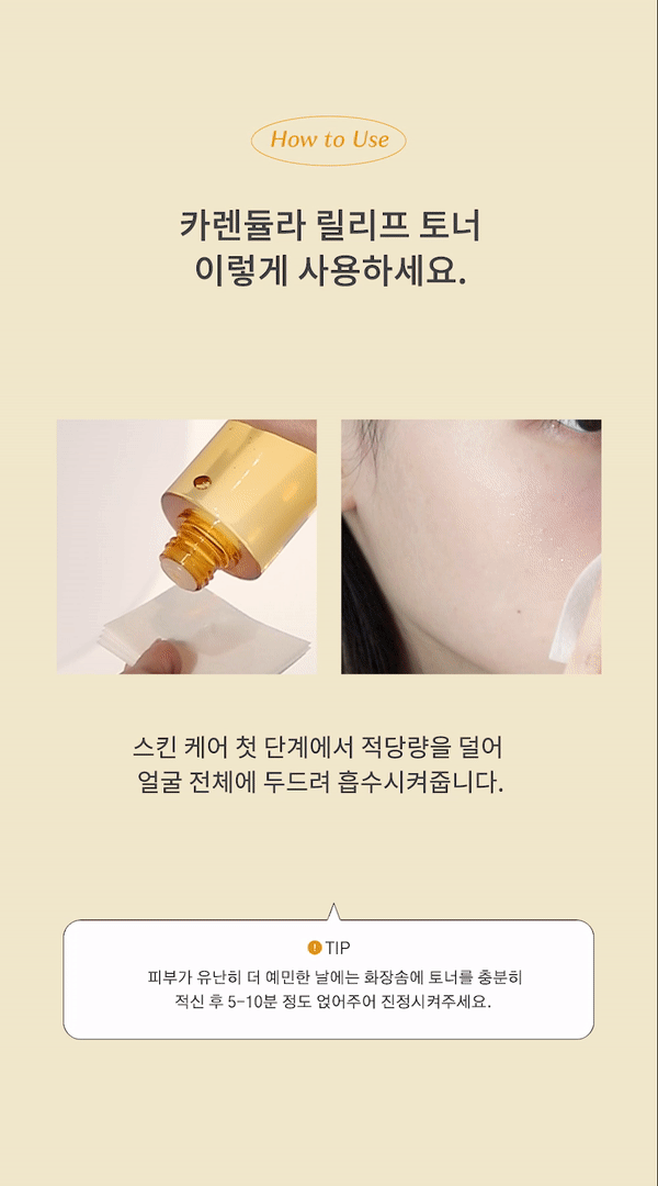 - On days when your skin feels particularly stressed, saturate a cotton pad with the toner and leave it on your face for 5 to 10 minutes for enhanced soothing.