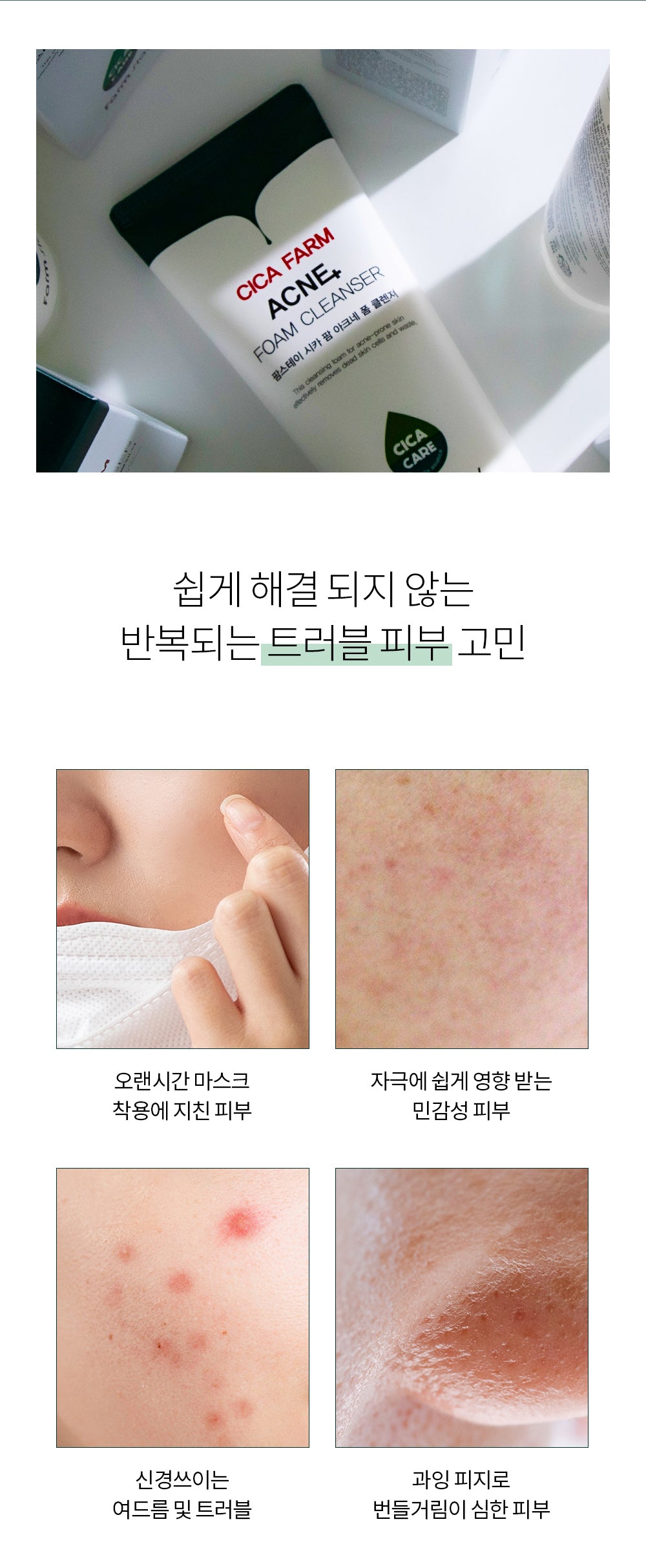The biggest problem with acne-problem skin is that wastes, dead skin cells, and makeup residues caused by improper cleansing block pores, preventing sebum from being discharged and causing inflammation.