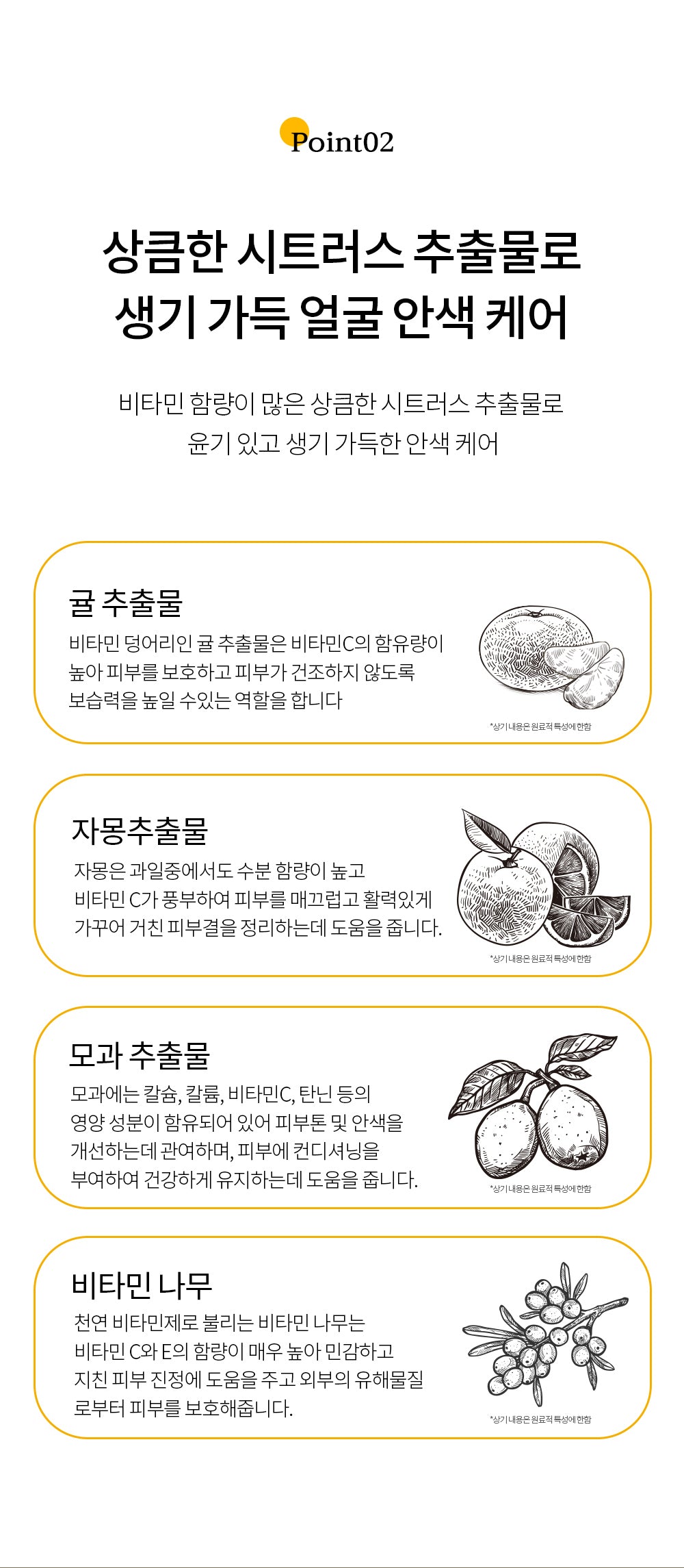 : High moisture content and rich in vitamin C to help smooth and revitalize skin and organize rough skin texture.