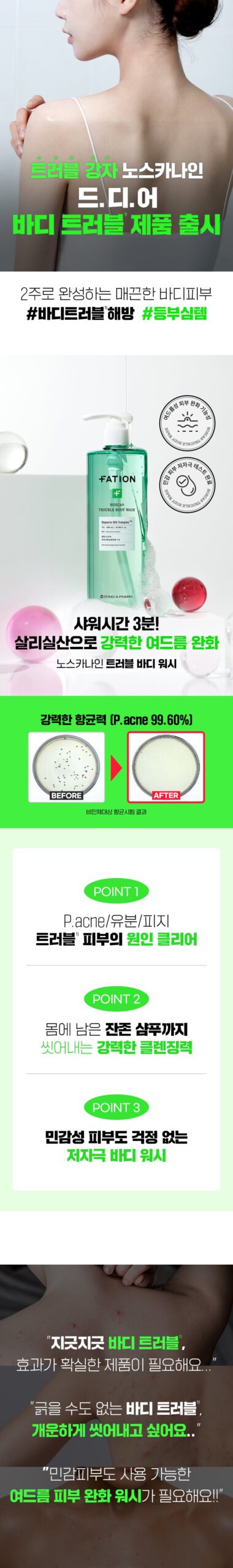 Nosca9 Trouble Body Wash is your answer to a systematic, science-backed approach to body skin care, leveraging over 90 years of expertise from Dong-A Pharmaceutical Research Institute.