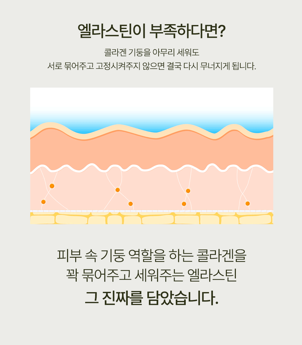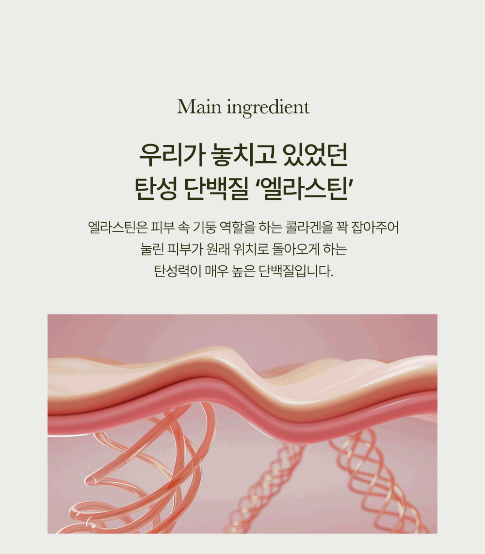 A high-elasticity protein that supports collagen, elastin helps your skin “snap back” to its original form, preventing sagging and loss of structure.