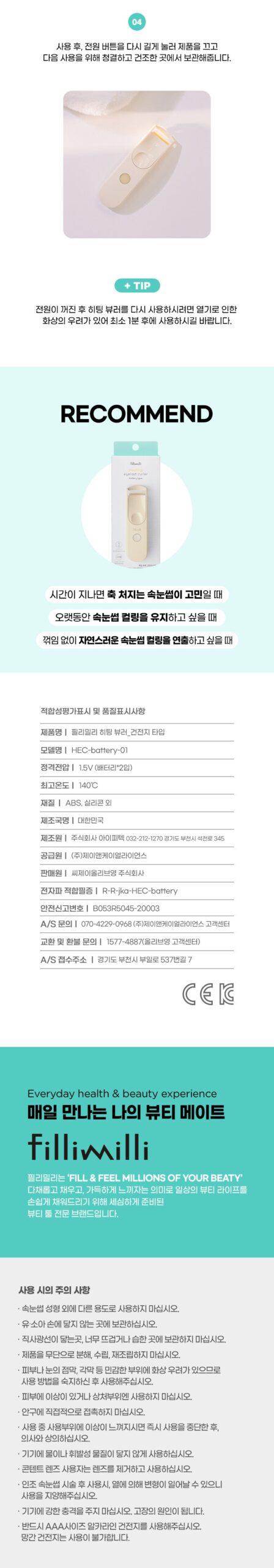 If you want to use the heating eyelash curler again after the power is turned off, please use it after at least 1 minute as there is a risk of burns due to the heat.