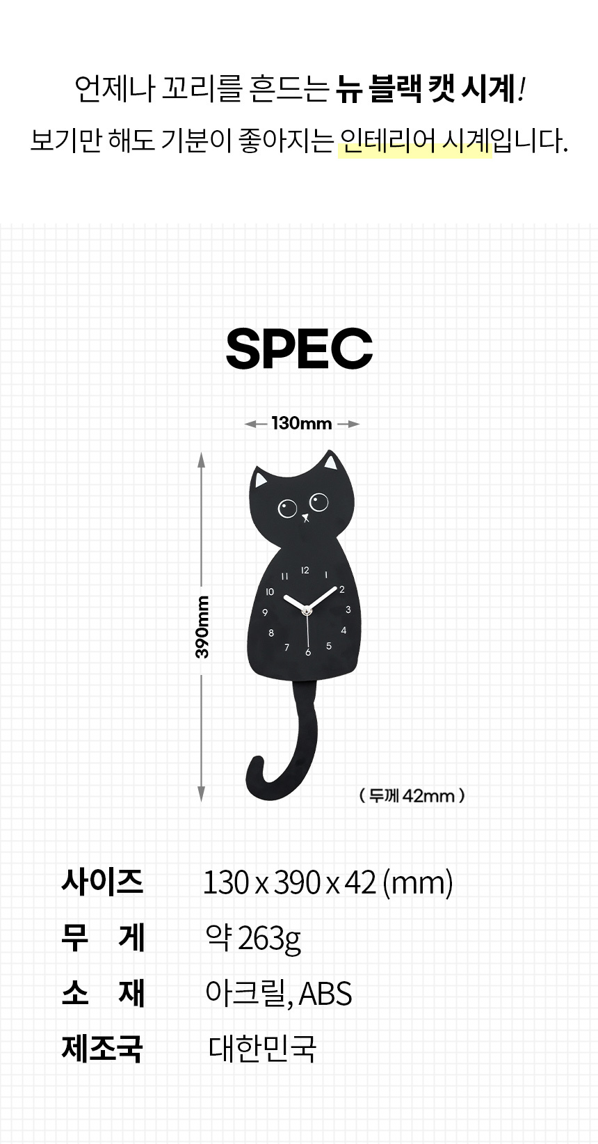 The New Black Cat Clock is always wagging its tail, bringing joy just by looking at it.
