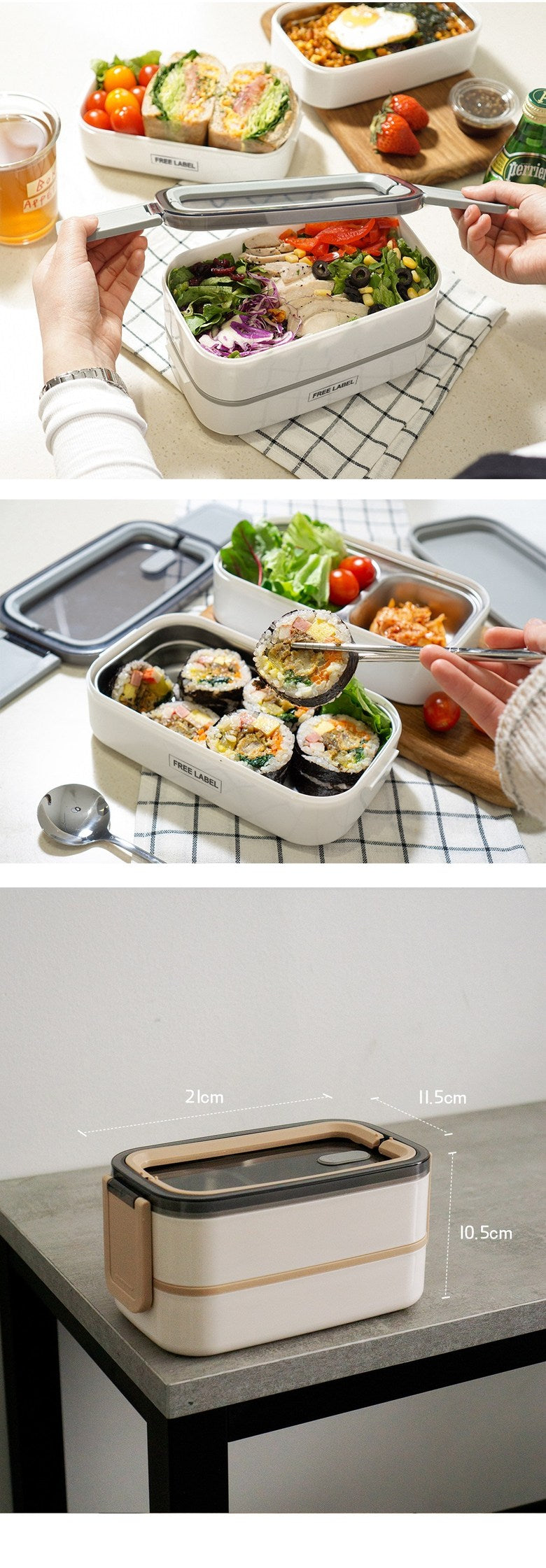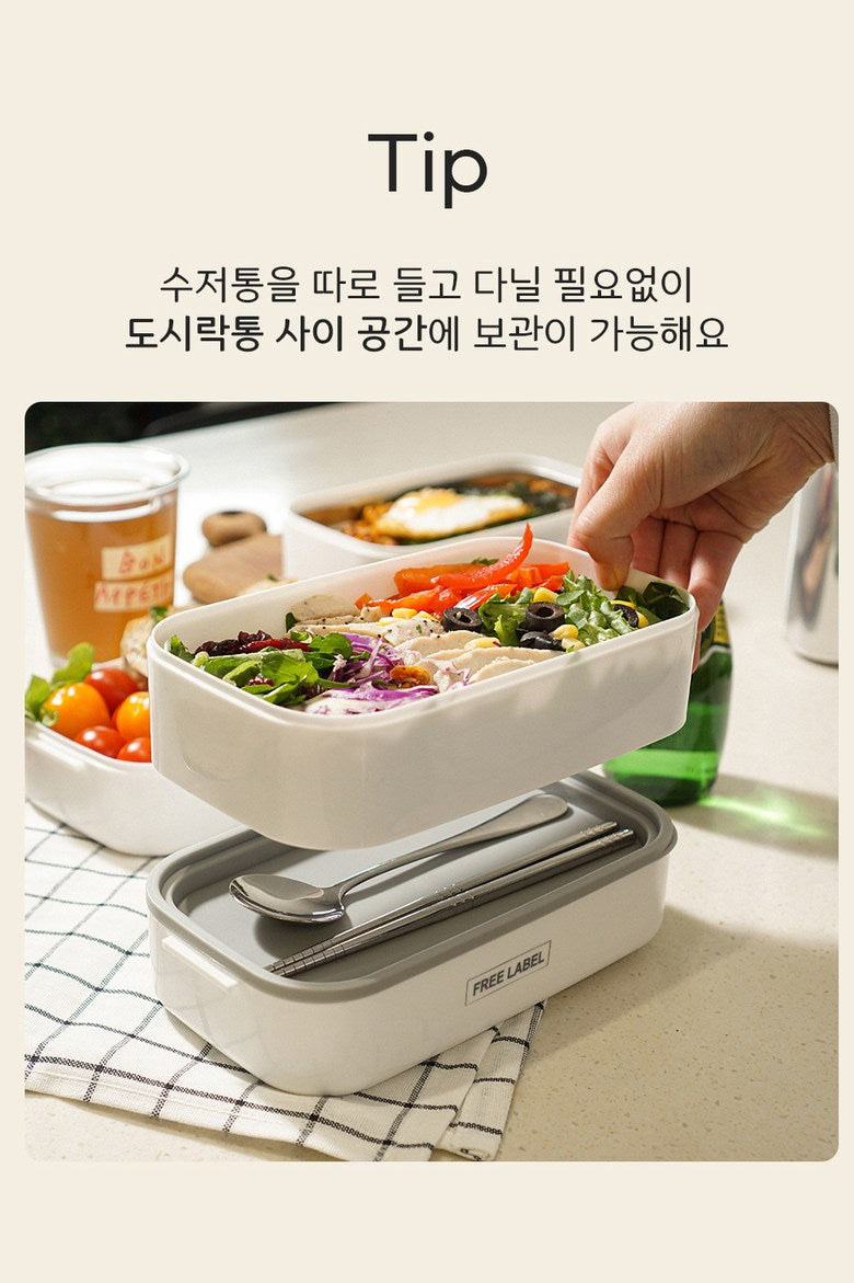 This 2-tier stainless steel lunch box set is a practical and stylish solution for enjoying meals on the go, with thoughtful design features that enhance both convenience and functionality.