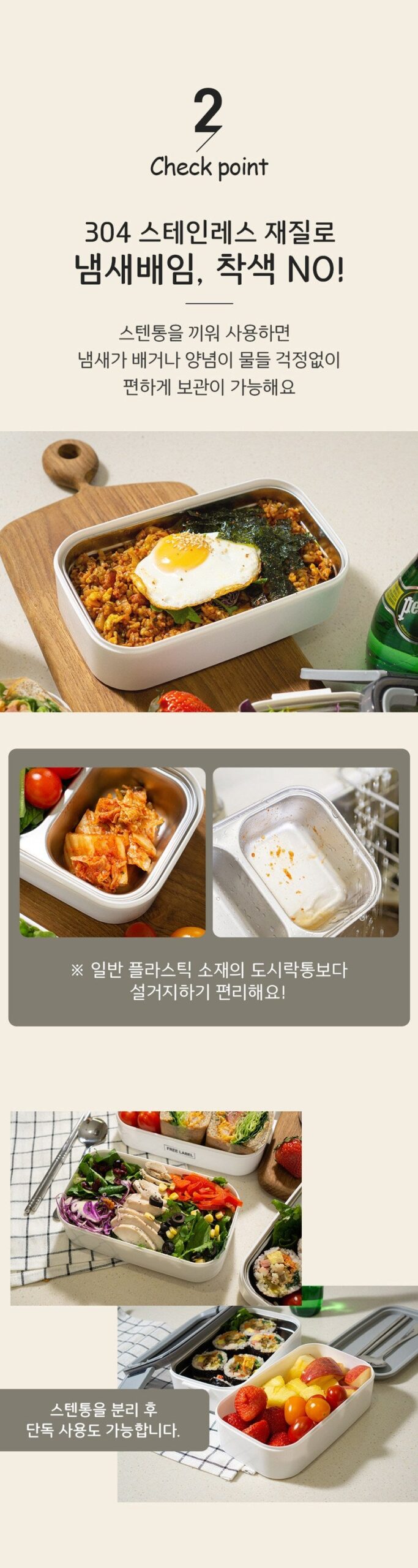Stainless Steel Material: Made from high-quality 304 stainless steel, this lunch box is resistant to odors and staining. The stainless steel container can be used alone or with the plastic container for easy storage and cleaning.