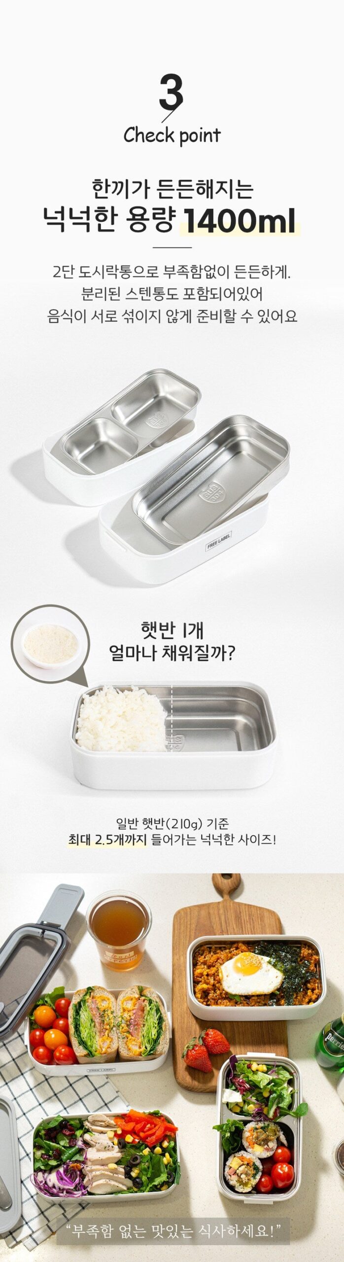 Generous Capacity: With a 1400ml capacity, this lunch box is perfect for a hearty meal.