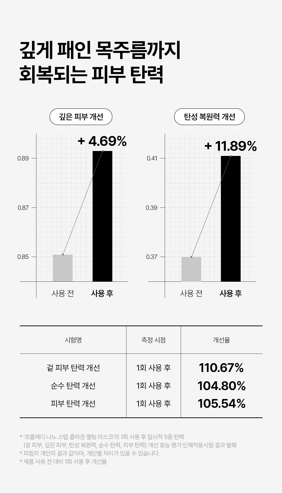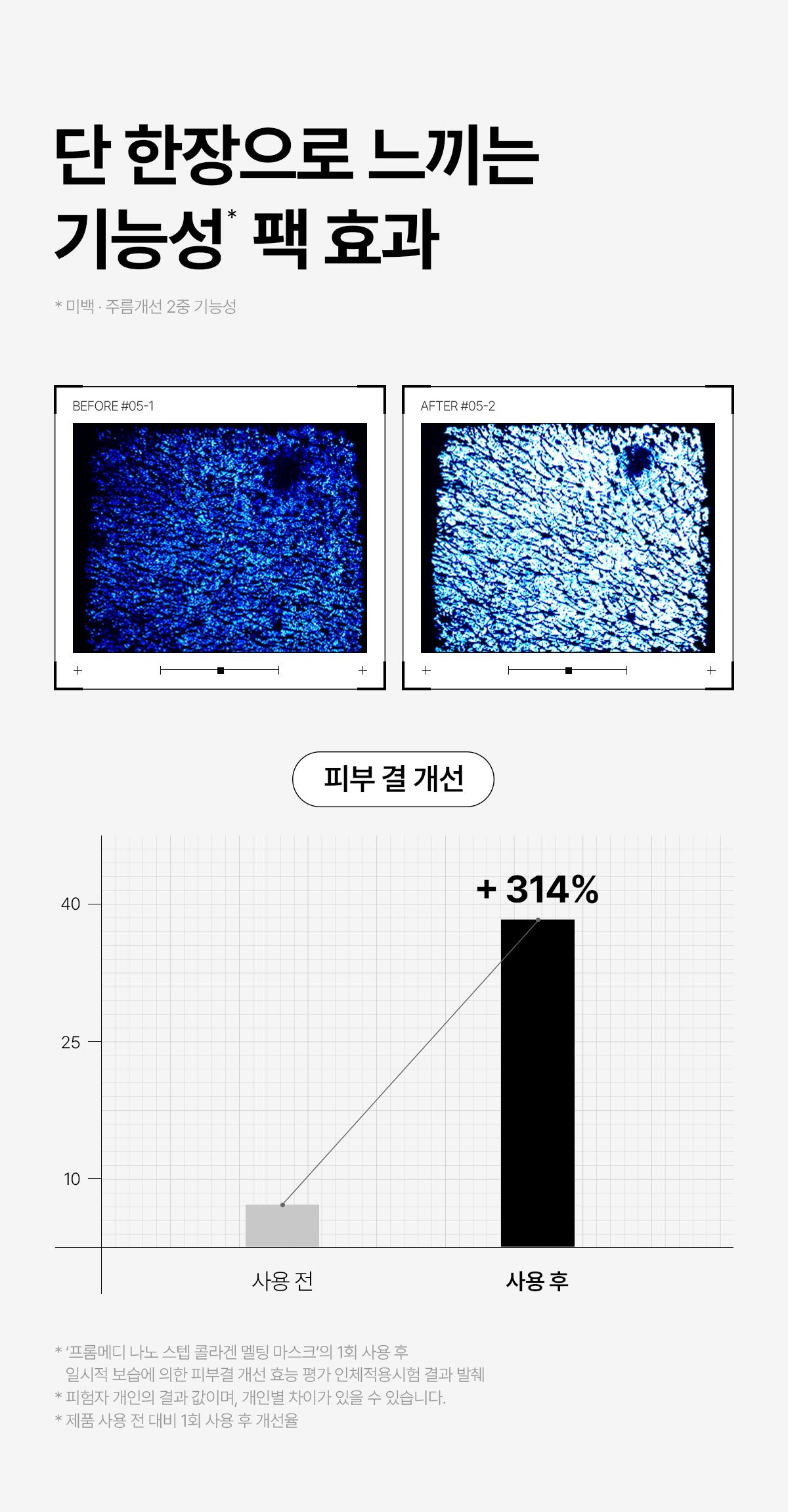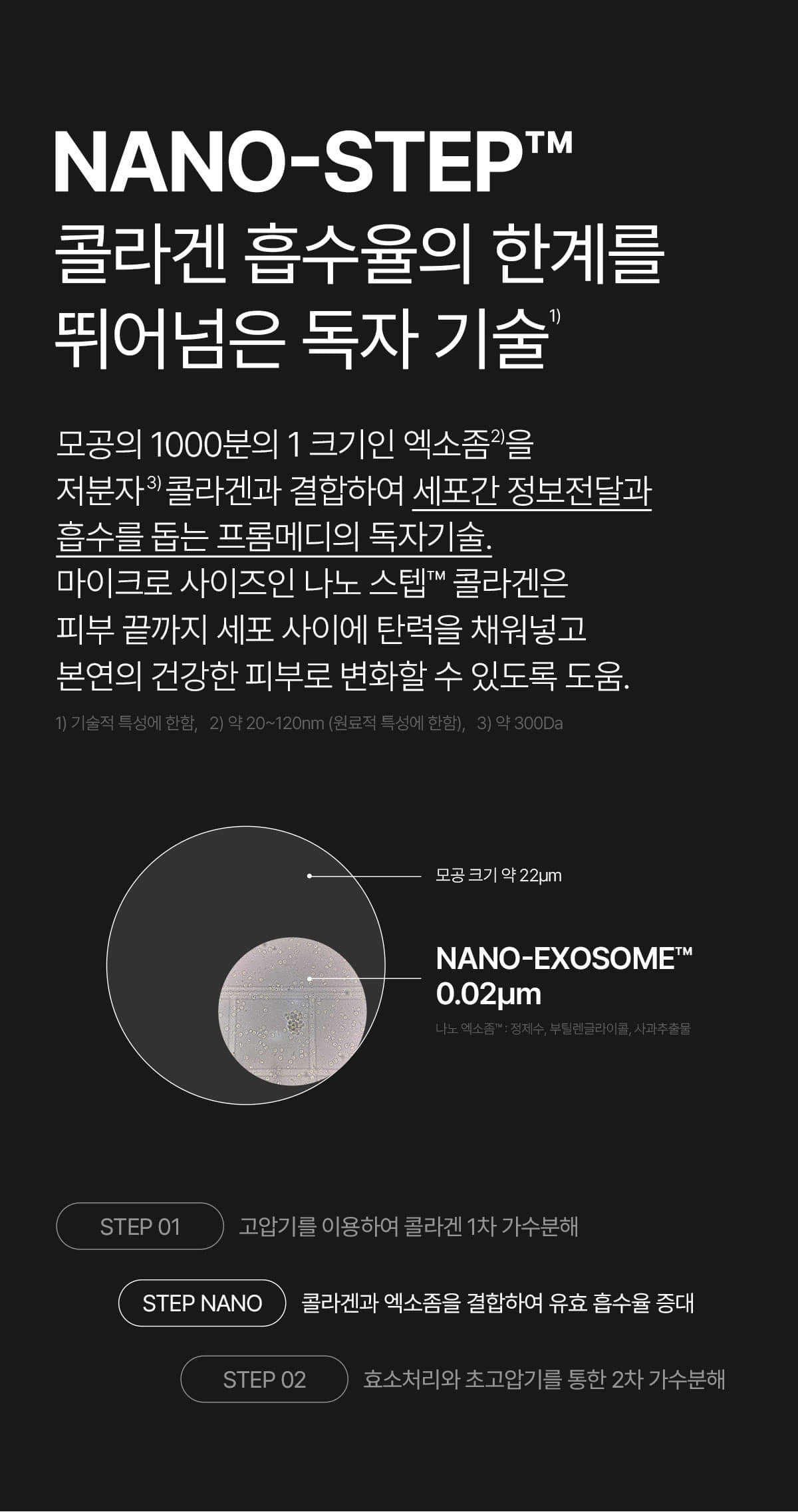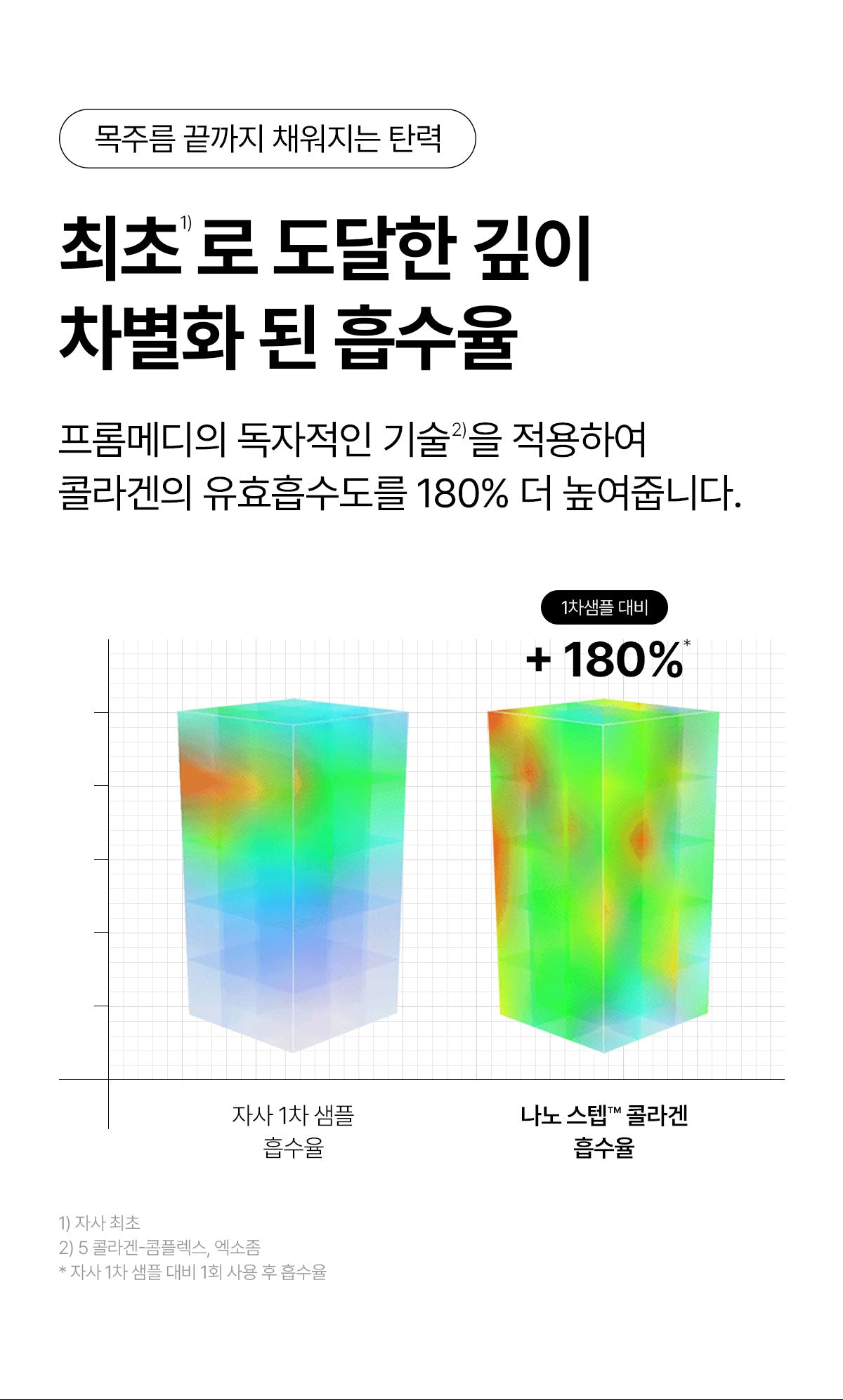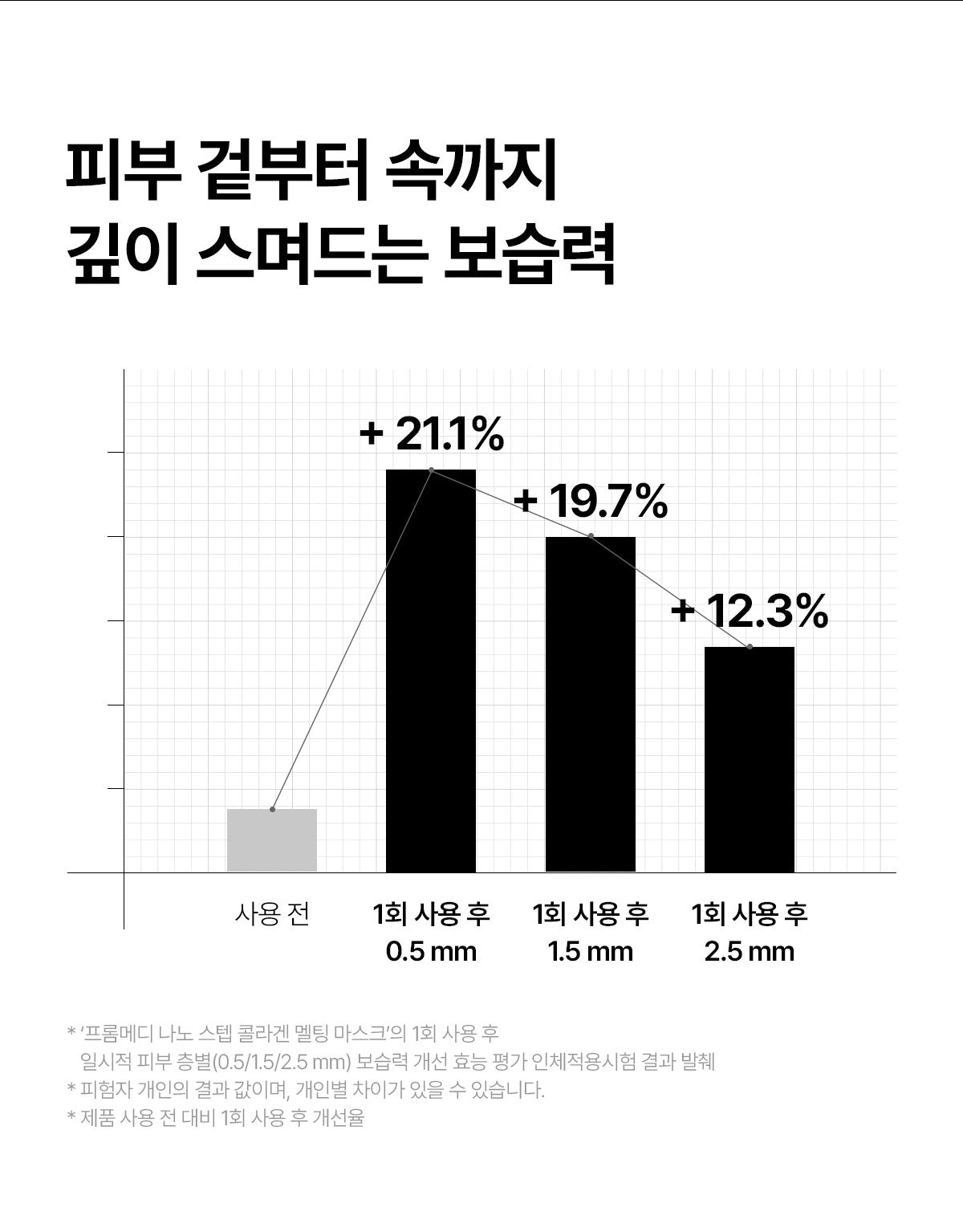 Prommedy’s exclusive Nano-step™ technology ensures efficient transfer and absorption of active ingredients into the skin. By using exosomes, the technology increases collagen absorption by 180%, delivering elasticity deep into wrinkles and helping restore youthful skin texture.